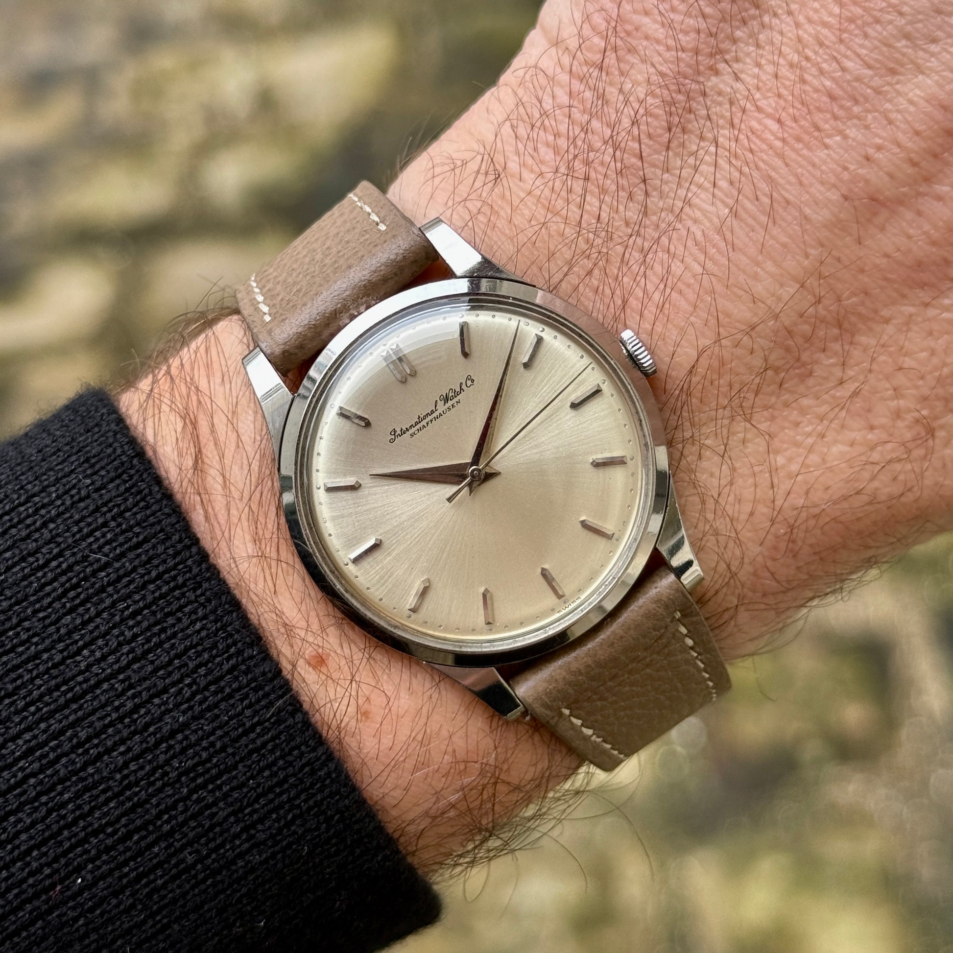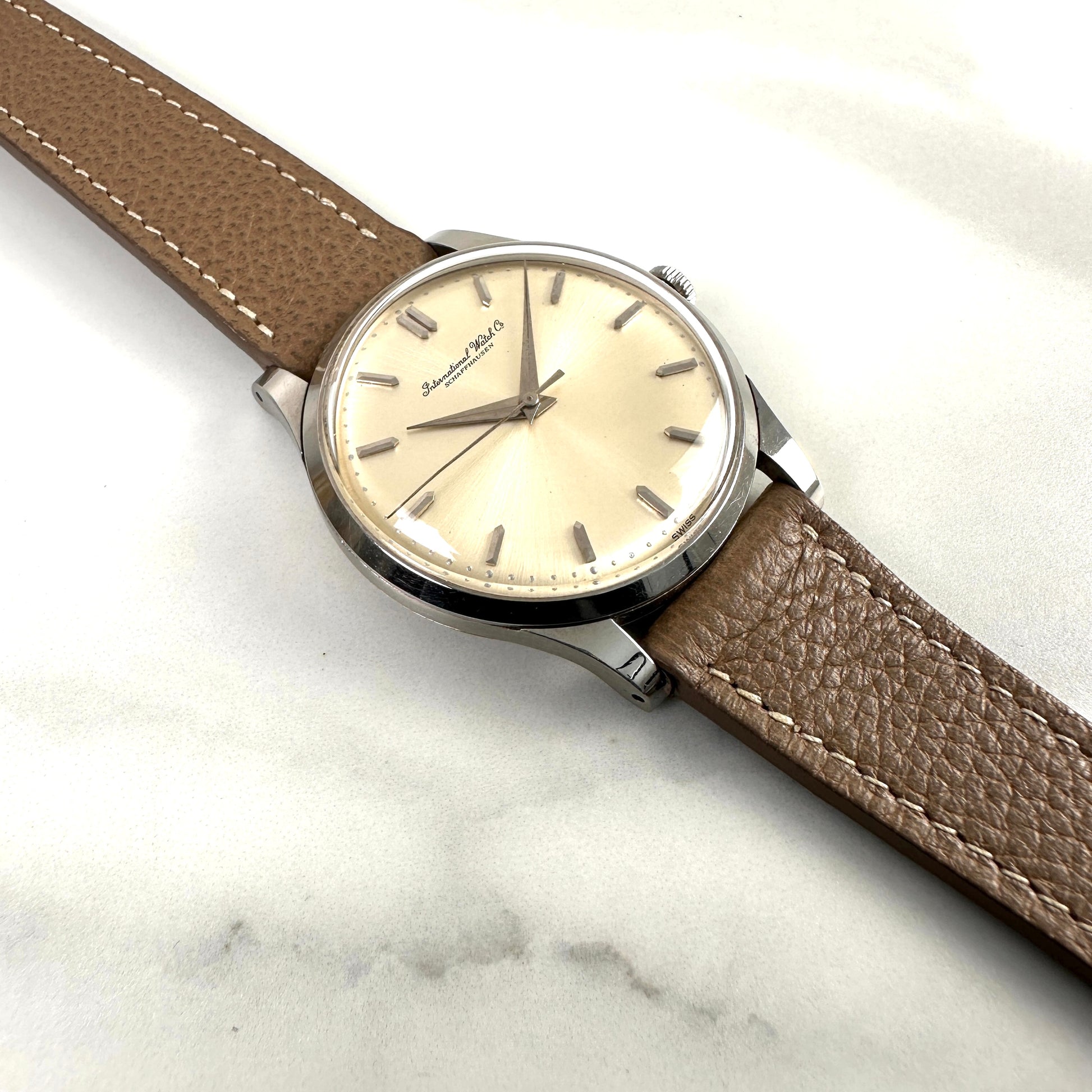 La maison IWC (International Watch Co.) fondée en 1868, s’est illustrée par des montres d’une élégance sobre mais d’une mécanique de haut niveau. Les modèles dits « Calatrava » reflètent cet esprit horloger classique : boîtier fin, design épuré, finitions soignées. L’exemplaire que tu proposes, daté des années 1960, s’inscrit dans cette tradition et constitue une pièce vintage de qualité.