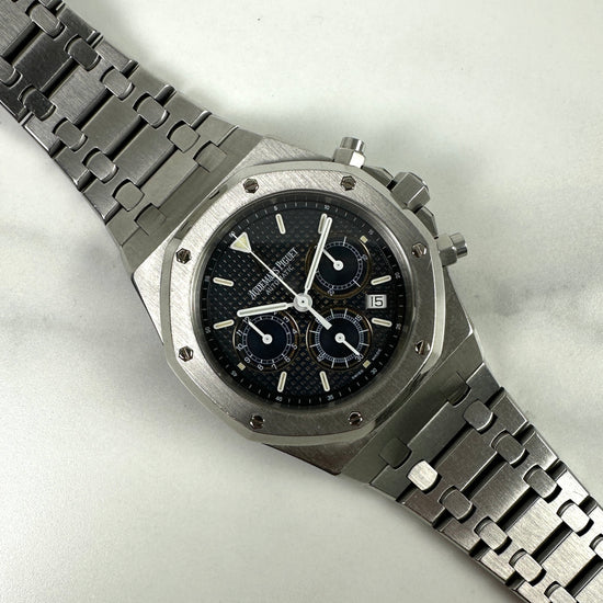 La RO Kasparov à été dévoilée en 1997 à l'occasion du 25ème anniversaire de la Royal Oak, fidèle au gabarit de la première Royal Oak "Jumbo" réf. 5402 (39MM). Fidèle au diamètre « Jumbo » original de 39MM, Audemars Piguet va réussir à loger un des calibres chronographe à remontage automatique le plus plat jamais réalisé de son époque. Un must pour les amateurs de la marque!
