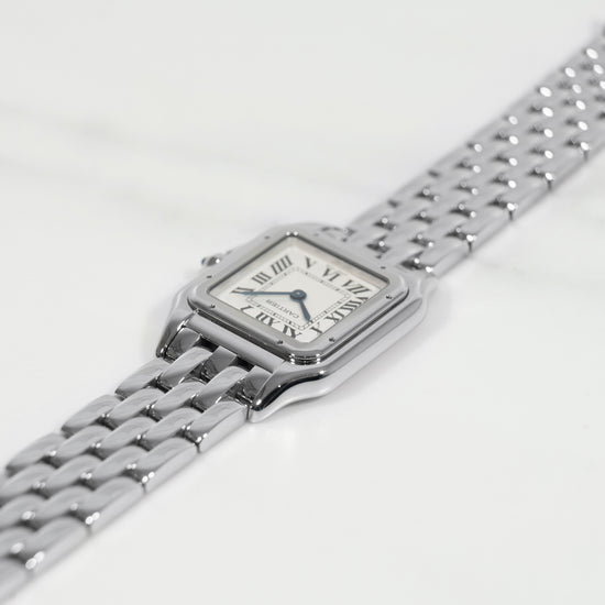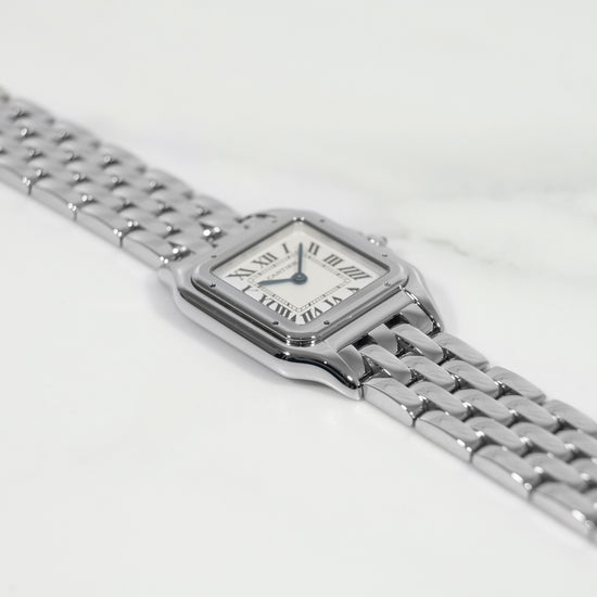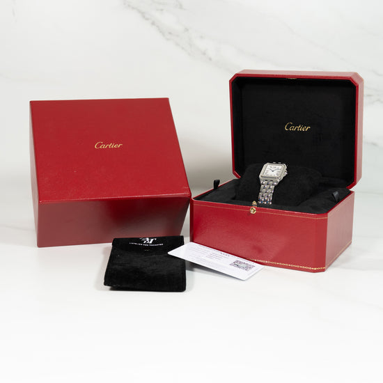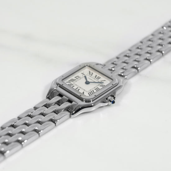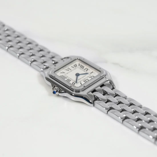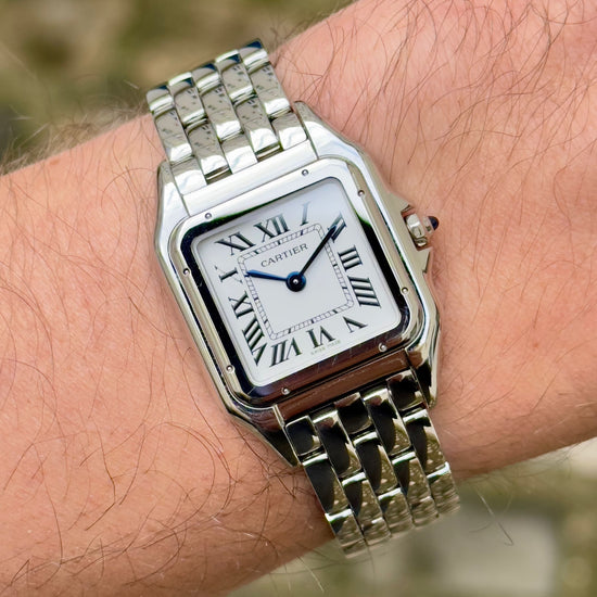 La Panthère WSPN0007 en 27 mm est l’une des montres les plus élégantes de la collection Cartier. Son format polyvalent et son design bijou en font une montre idéale pour le quotidien comme pour les occasions spéciales. Ce modèle de 2023, dans un état irréprochable et encore sous garantie Cartier pendant plusieurs années, représente une opportunité rare pour acquérir une montre intemporelle, rassurante et désirable.