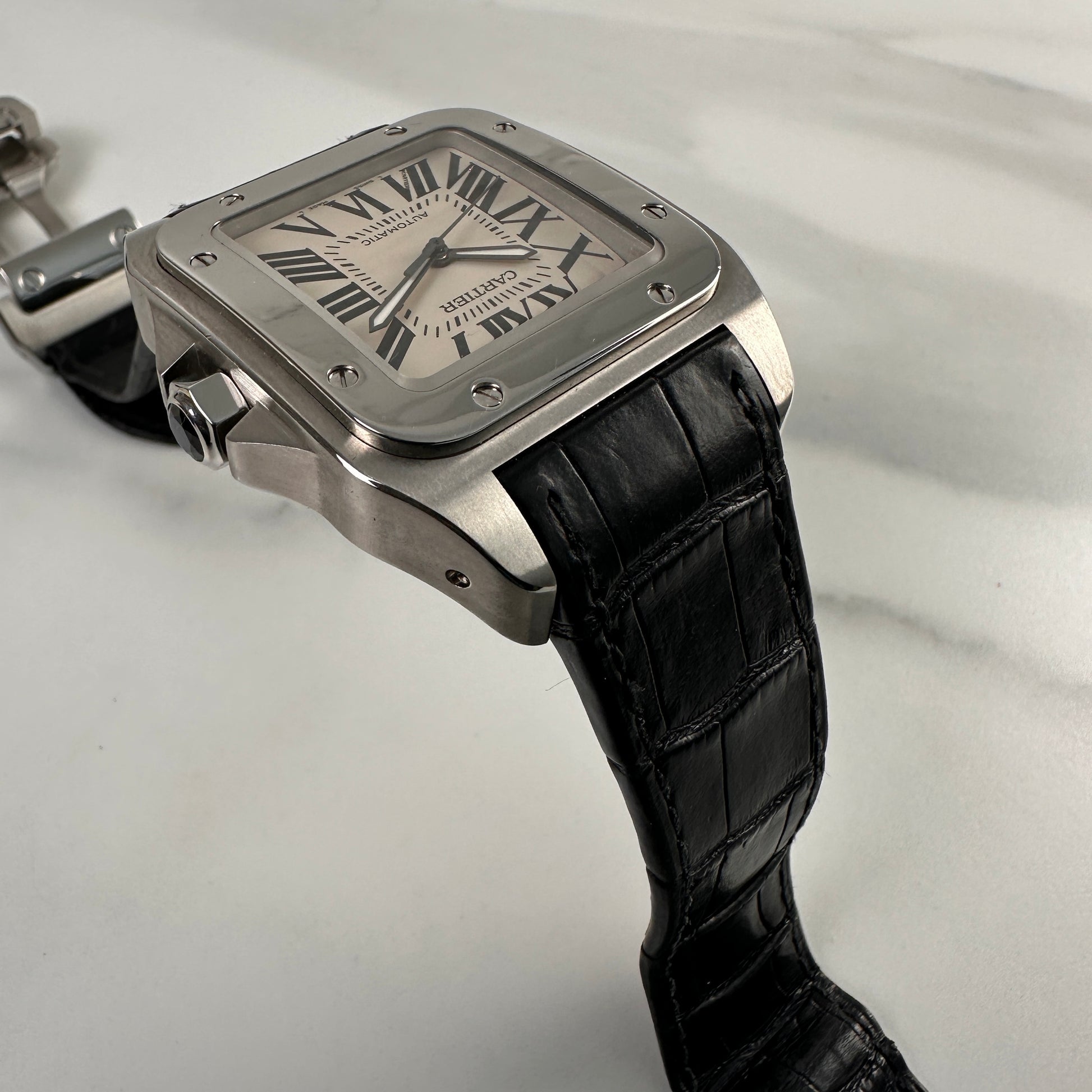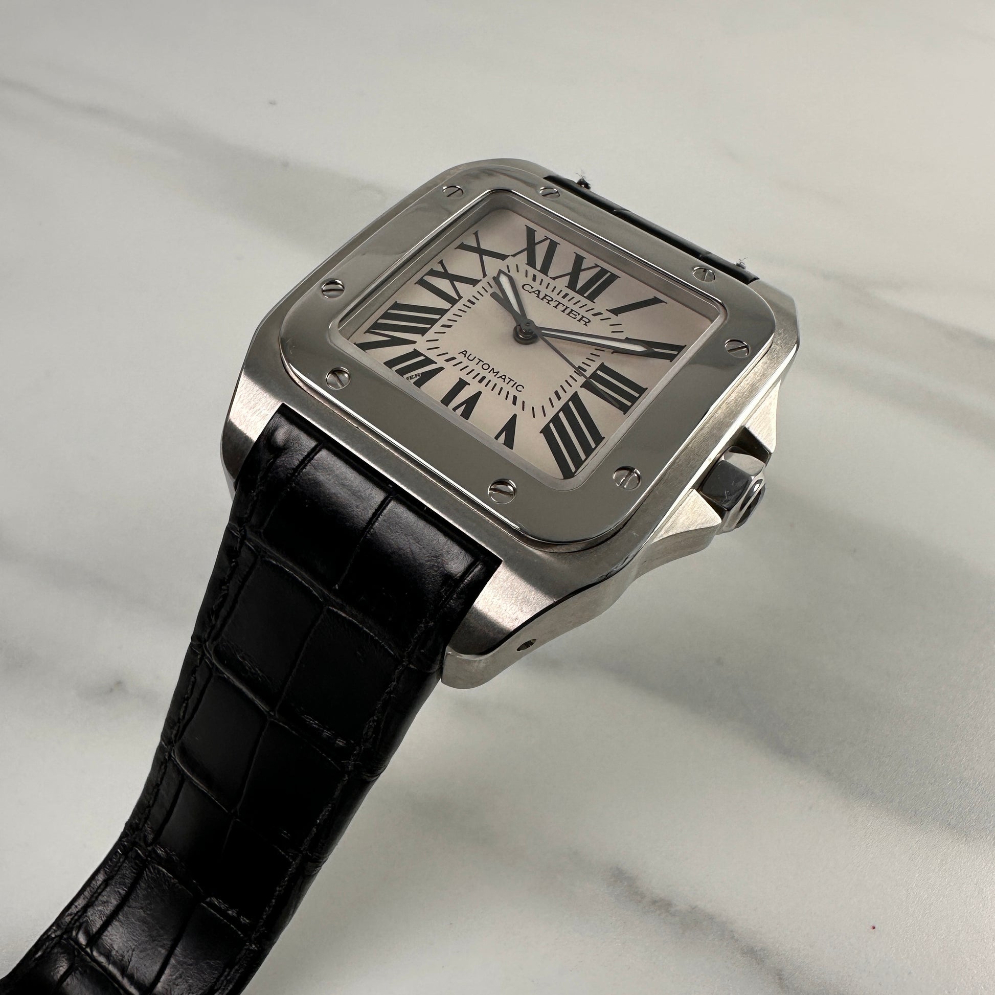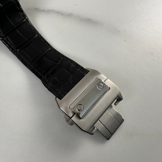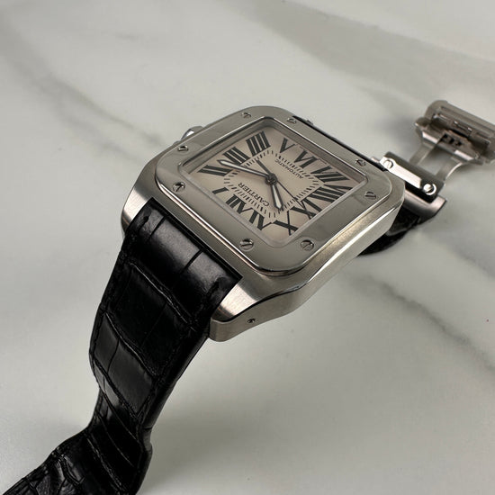 1904, Louis Cartier exauce le voeu du célèbre aviateur brésilien Alberto Santos Dumont : lire l’heure en plein vol. Ainsi est née l’une des premières montres-bracelets, scellant l’amitié de deux précurseurs. Son cadran aux angles arrondis, ses attaches au galbe harmonieux , ses vis apparentes signent une montre iconique qui fera l'objet de multiples réinterprétations.