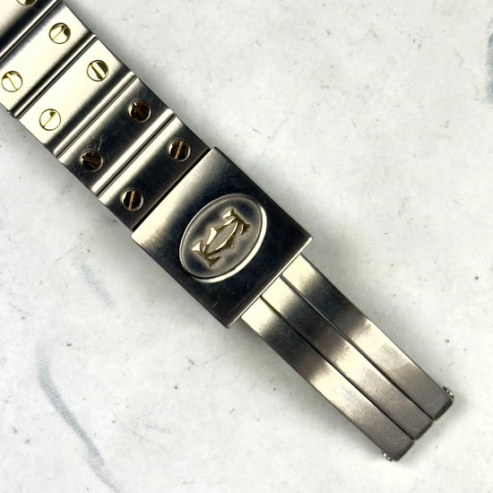 Produite dans les années 1990-2000, elle reflète parfaitement l’élégance Cartier de l’époque, mêlant finesse, complications discrètes et style parisien assumé. Aujourd’hui, cette version est très recherchée pour sa rareté et sa personnalité unique.