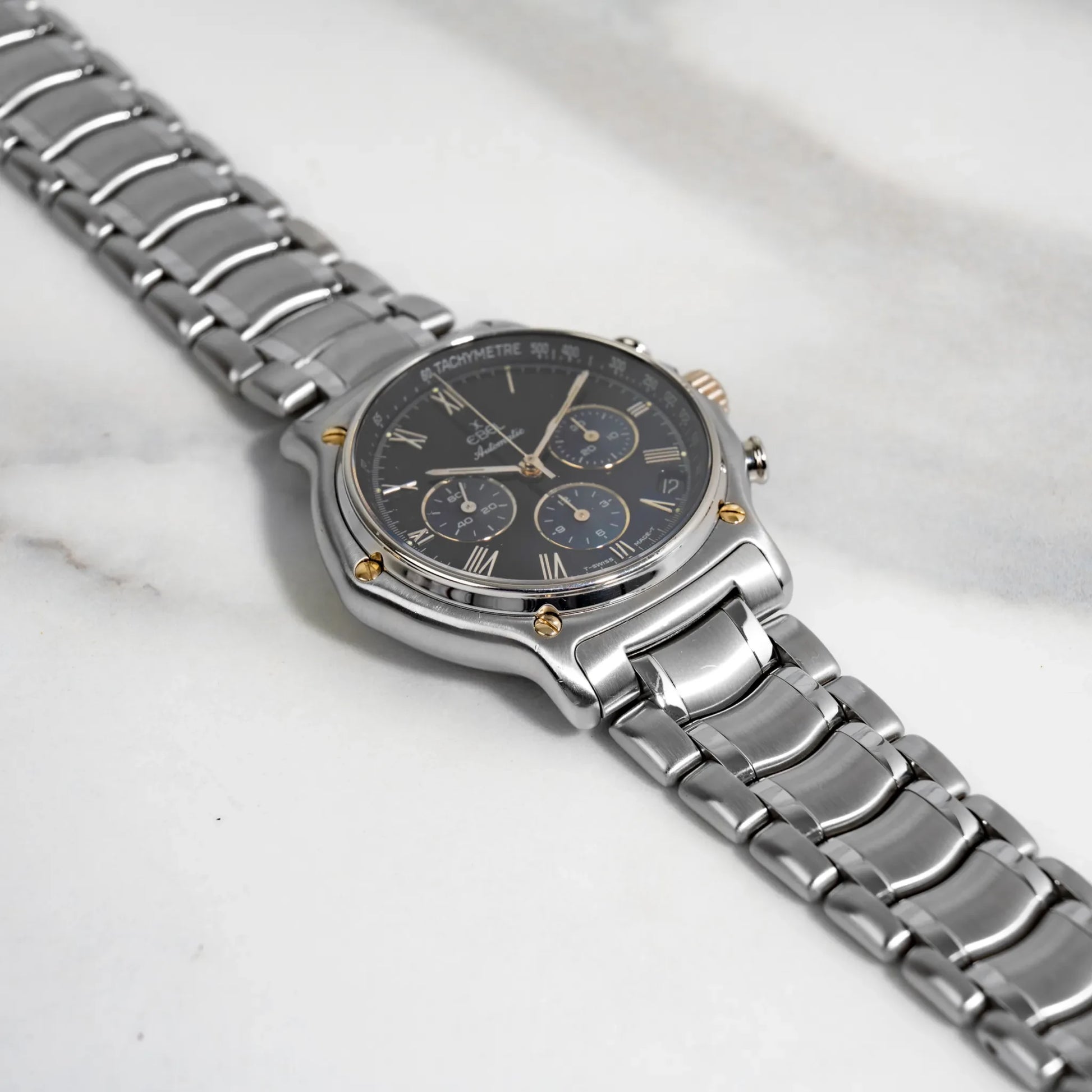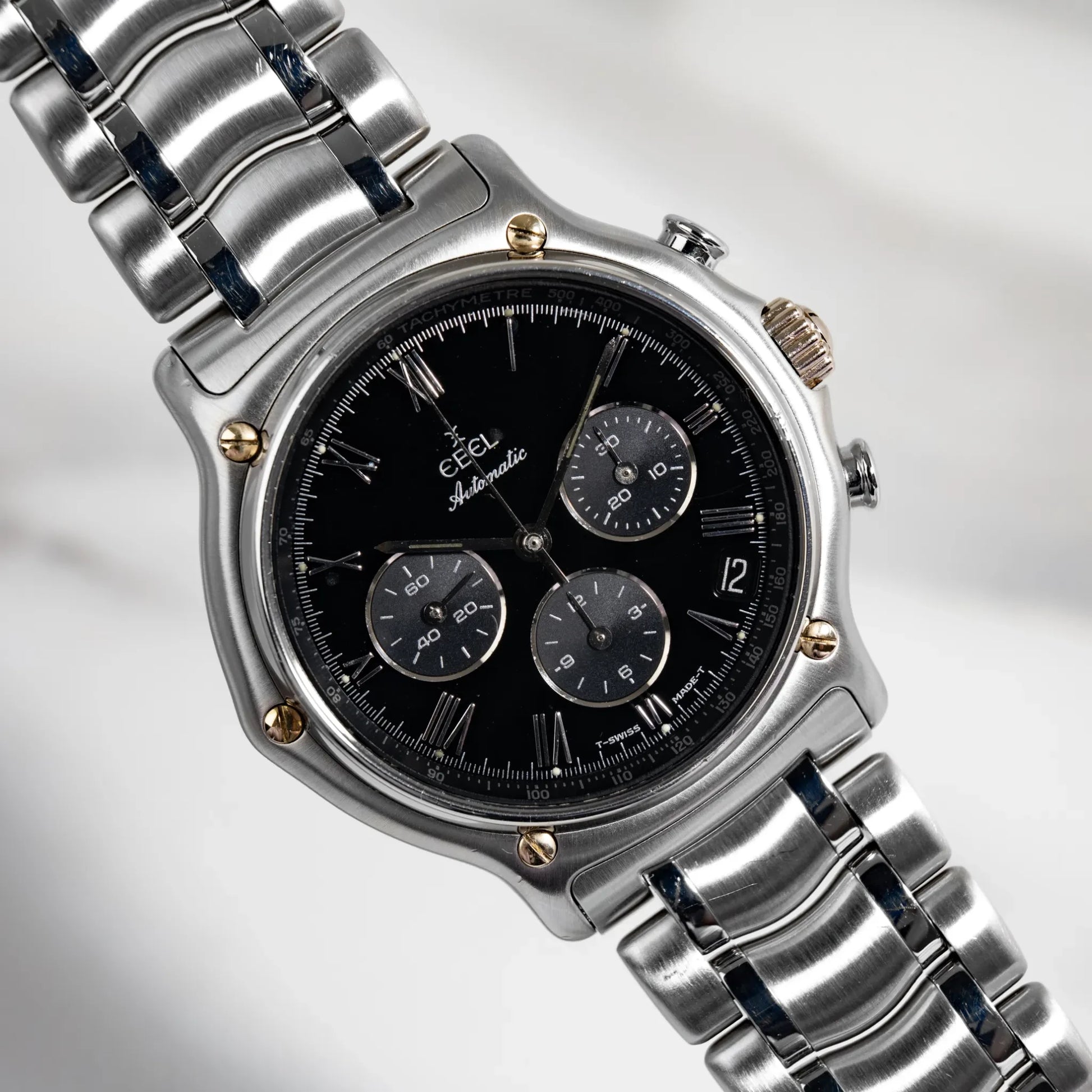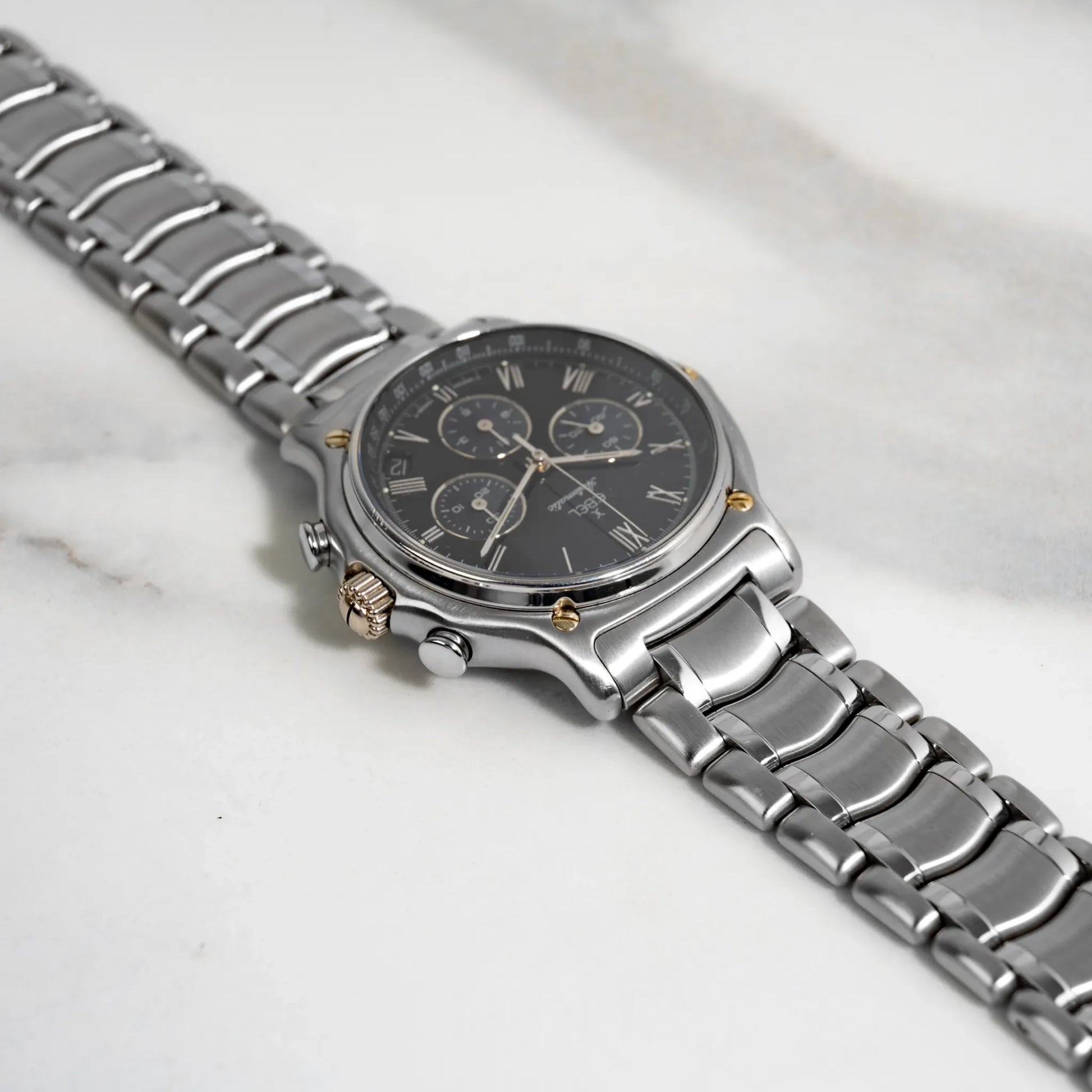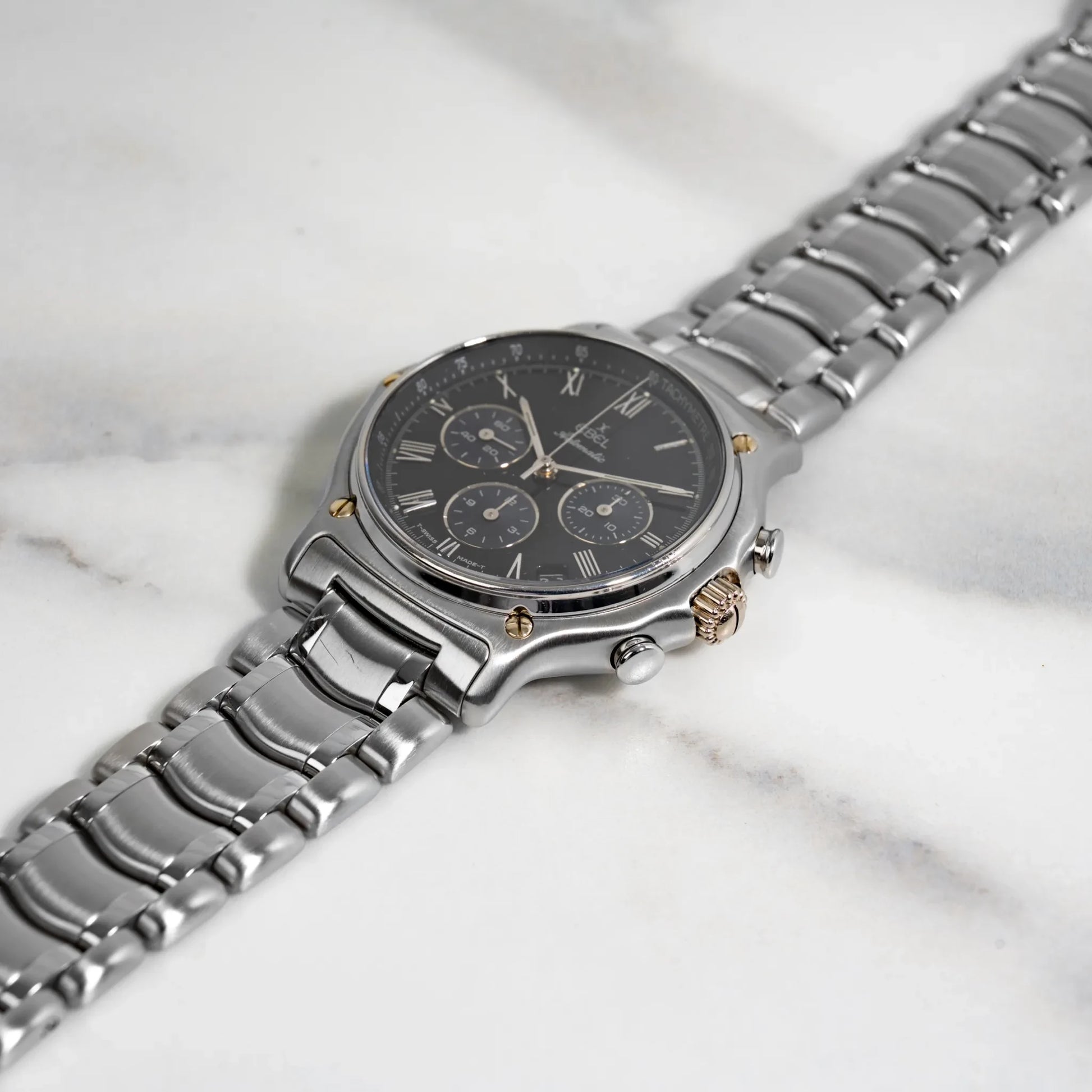 Dans les années 1990, la maison Ebel, alors en pleine montée en gamme, s’associe à des références mécaniques de prestige pour équiper ses modèles les plus haut de gamme. C’est ainsi que naît cette Ebel 1911 Chronograph, abritant le mythique calibre El Primero de Zenith, l’un des meilleurs mouvements chronographes automatiques au monde.