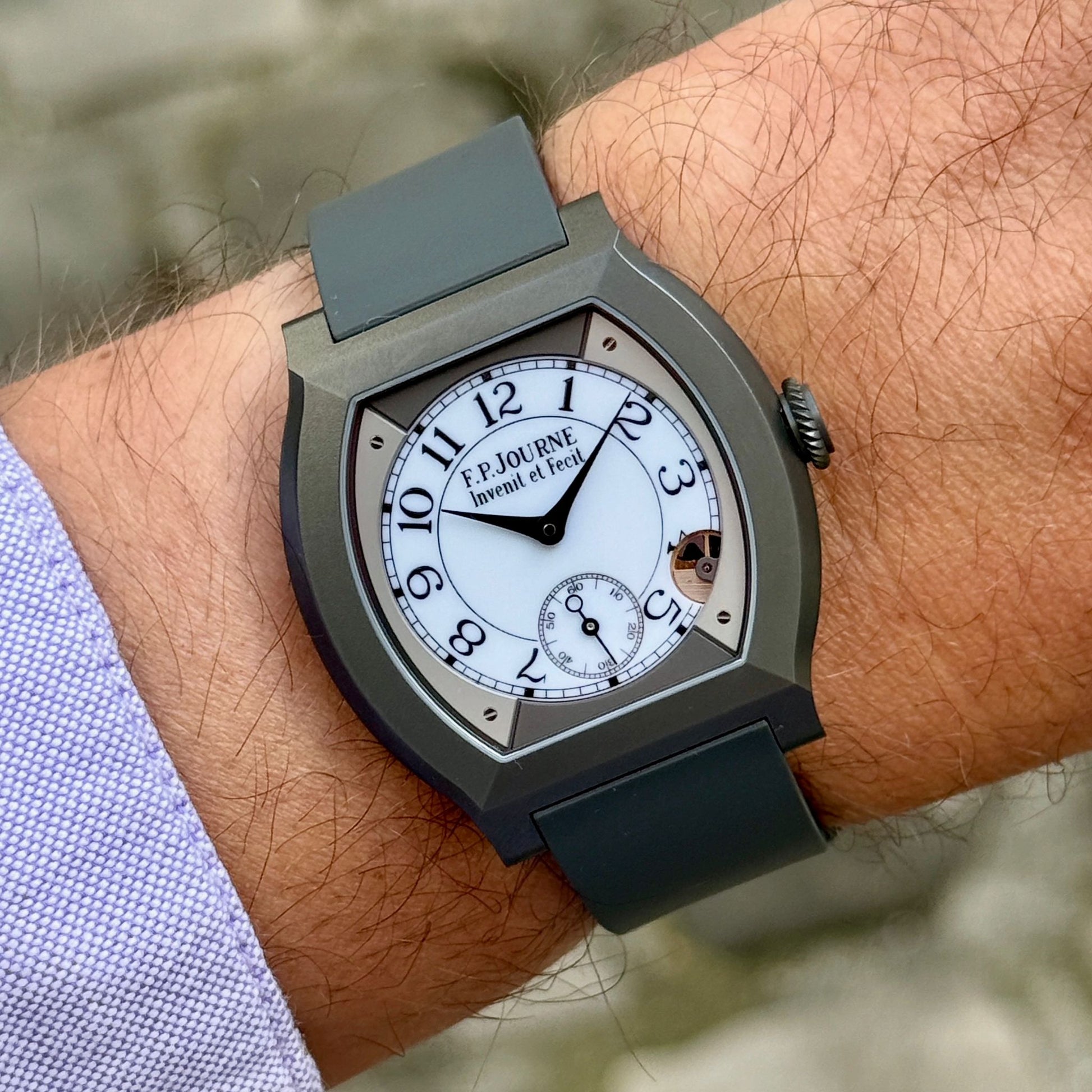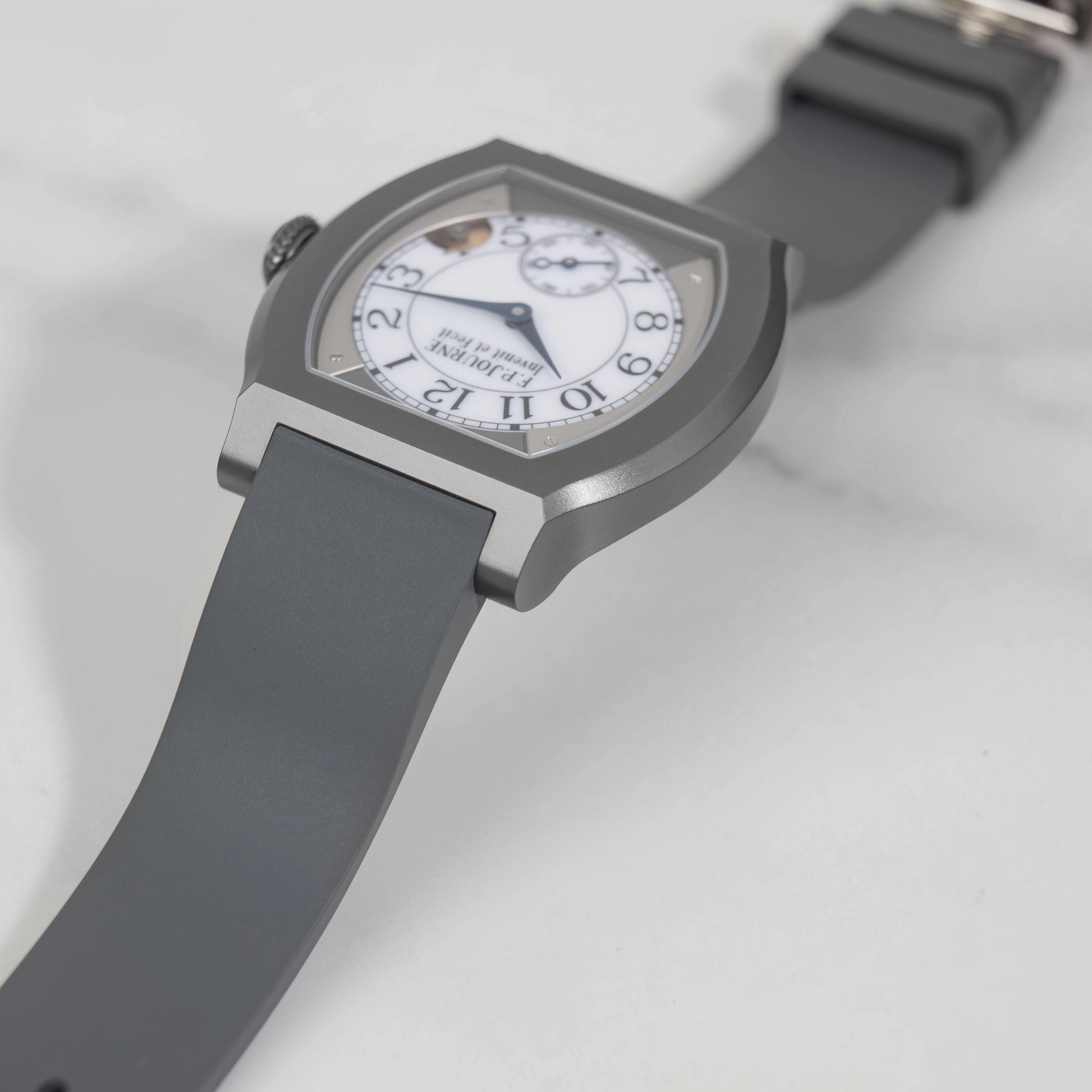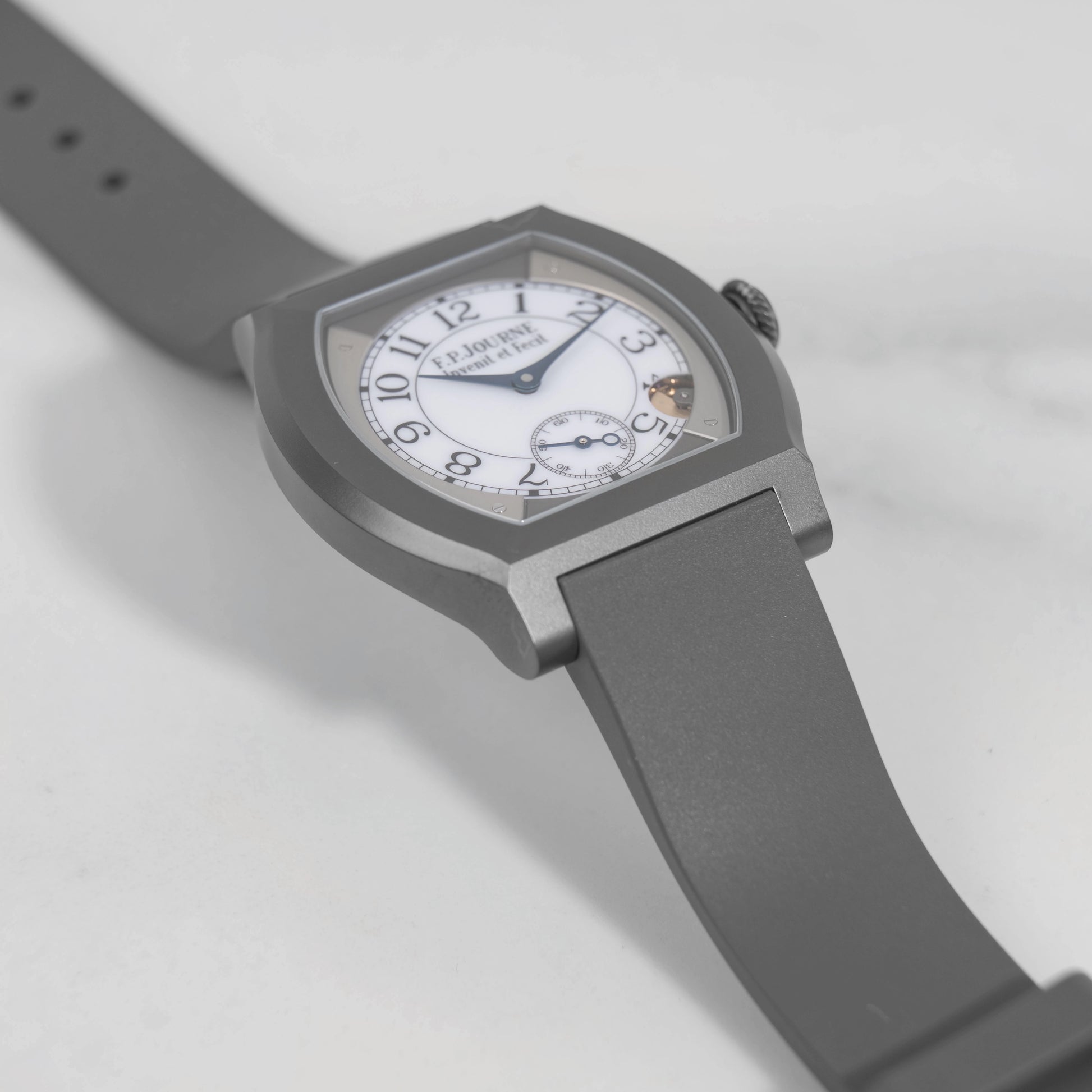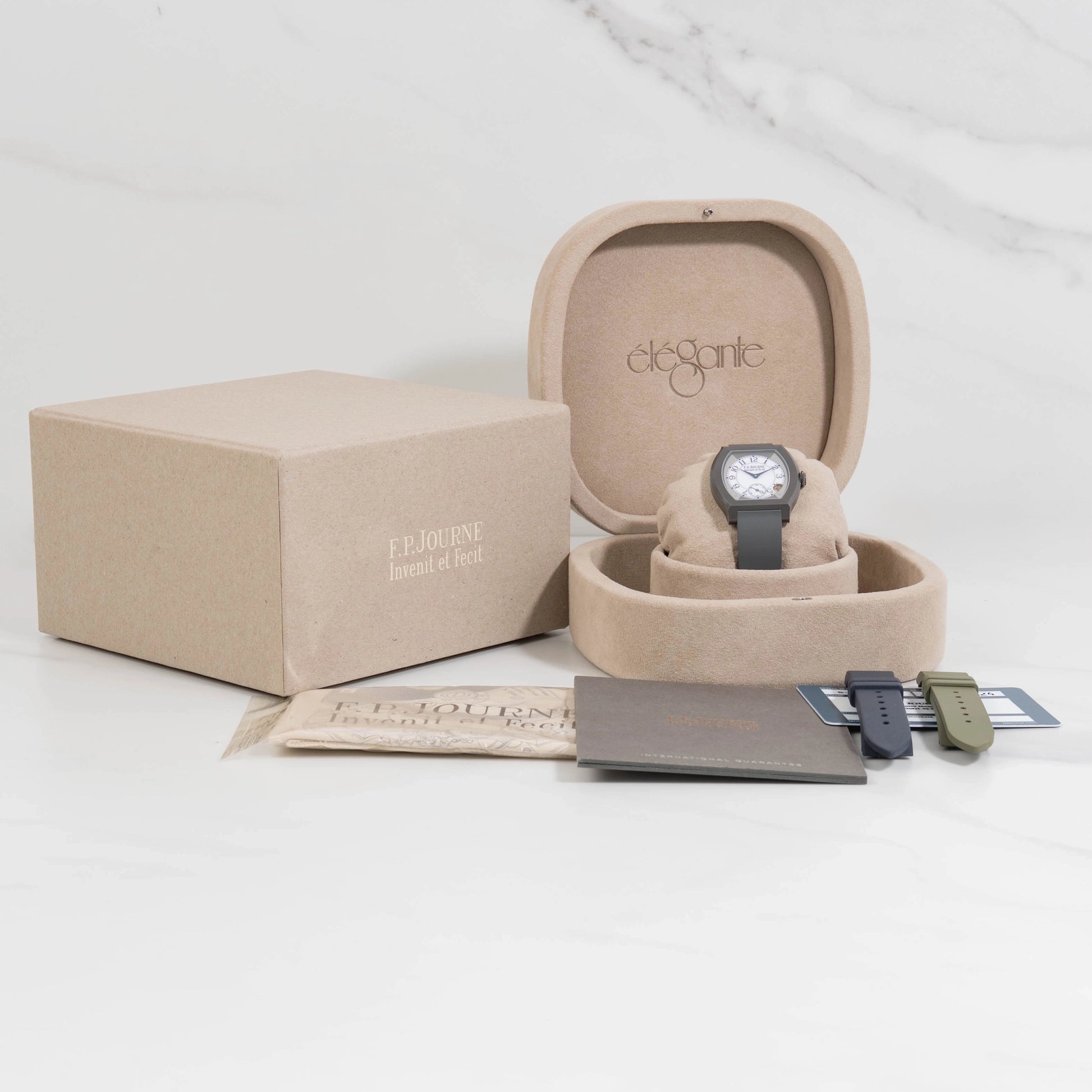 La F.P. Journe Élégante en Titalyt 40 mm est l’une des montres à quartz les plus abouties du marché, pensée non pas comme une alternative, mais comme une vraie proposition horlogère de haute précision. Elle conjugue technologie de pointe, esthétique minimaliste, et philosophie de confort au quotidien. Rare, innovante et signée d’un des plus grands maîtres horlogers contemporains, elle a déjà conquis un cercle d’initiés — et gagne chaque jour en reconnaissance auprès des collectionneurs exigeants.