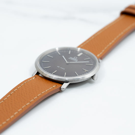 Dans les années 1970, la collection De Ville d’Omega se distingue par son élégance discrète et son raffinement. Conçue comme une alternative plus habillée aux Seamaster, cette référence 151.0039 reflète parfaitement l’ADN de la marque à cette époque : design minimaliste, cadran sobre et boîtier fin, abritant un mouvement automatique Omega fiable.