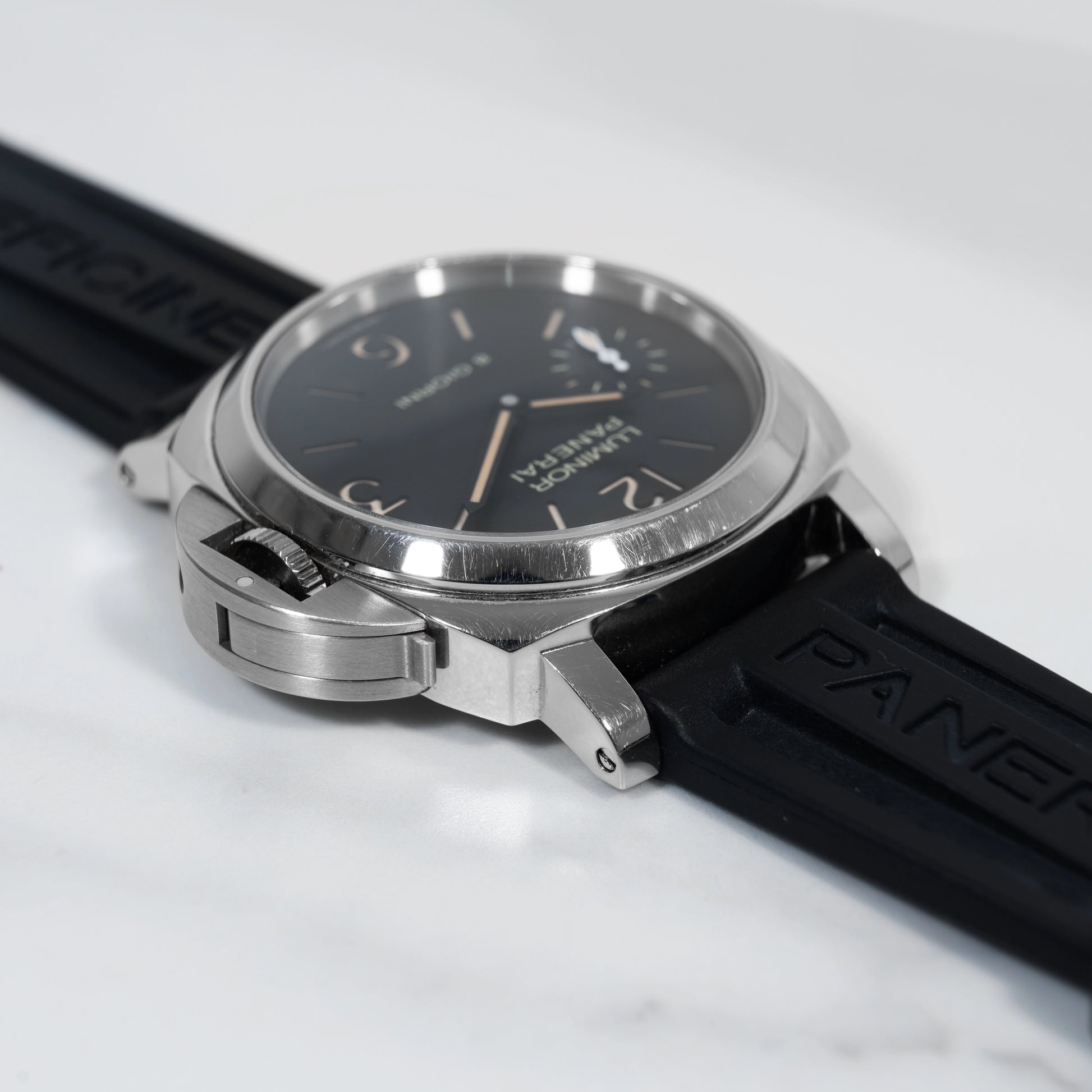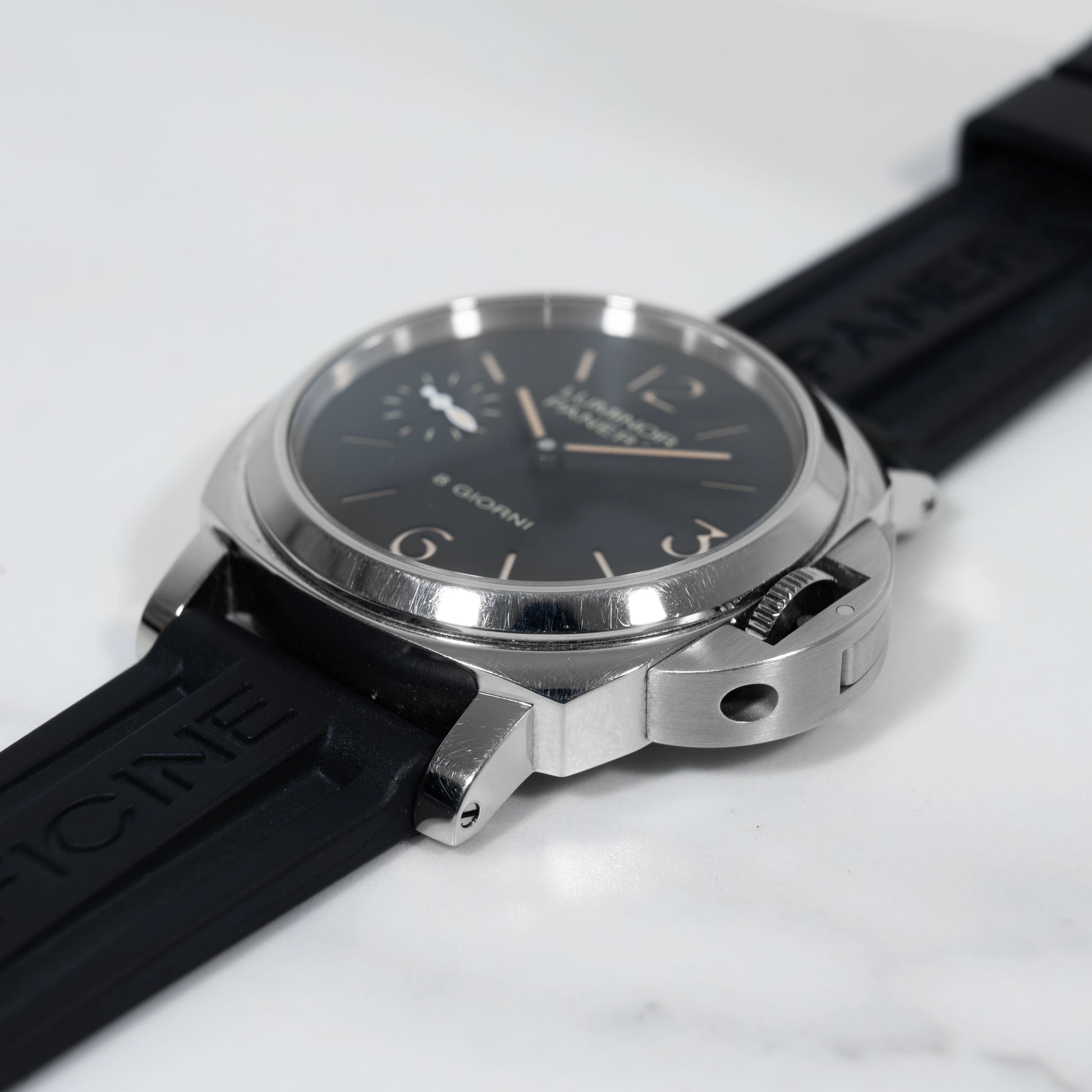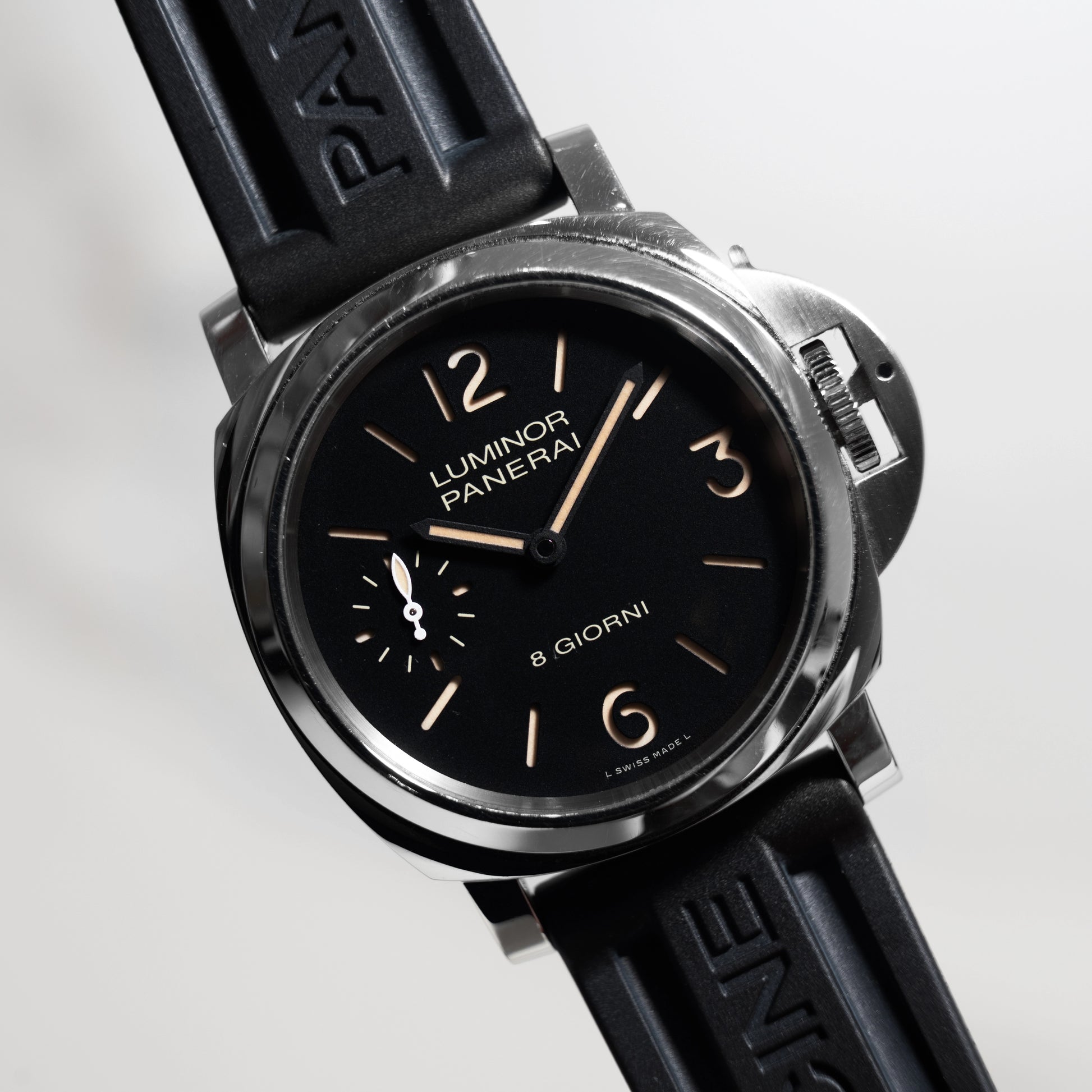 Cette Panerai Luminor 8 Giorni PAM00915 est une pièce remarquable pour qui recherche une montre au fort impact visuel, dotée d’une mécanique simple mais aboutie et d’une grande autonomie. Le format 44 mm s’impose au poignet, tout en restant lisible et équilibré. Le fait qu’elle soit full set de 2023 confirme son intégrité et sa valeur.