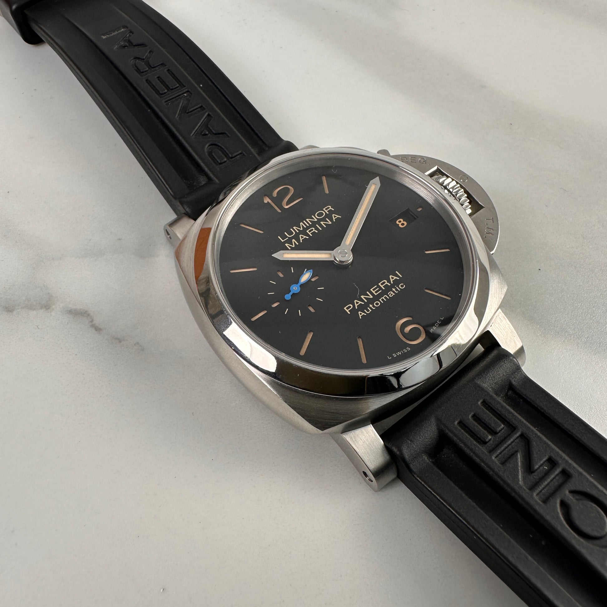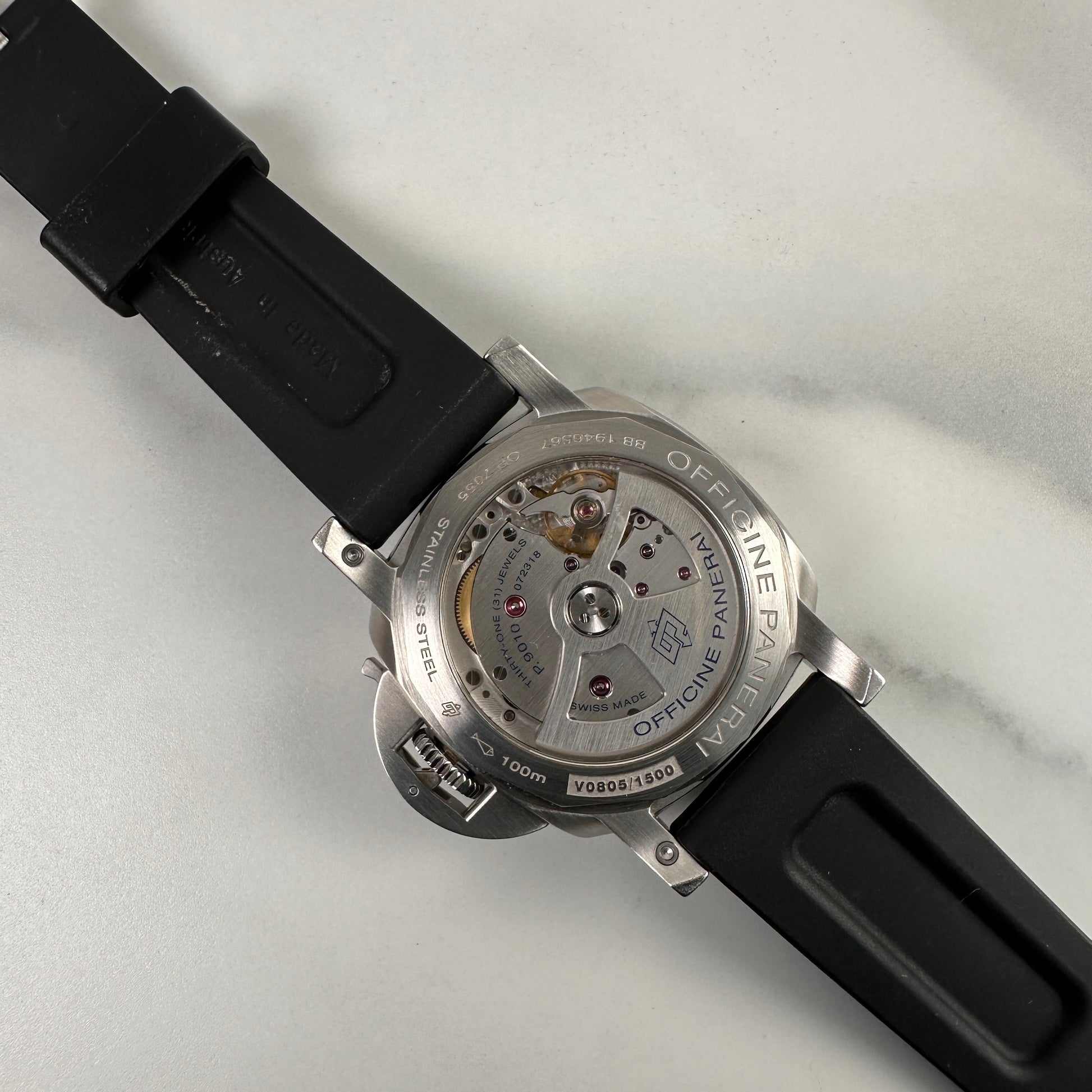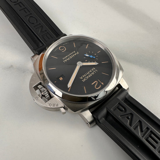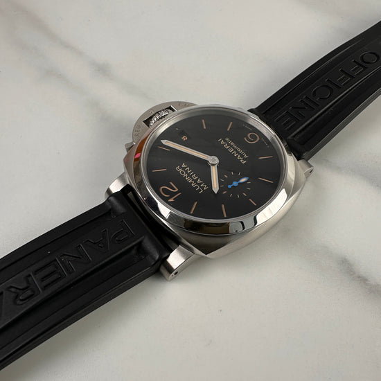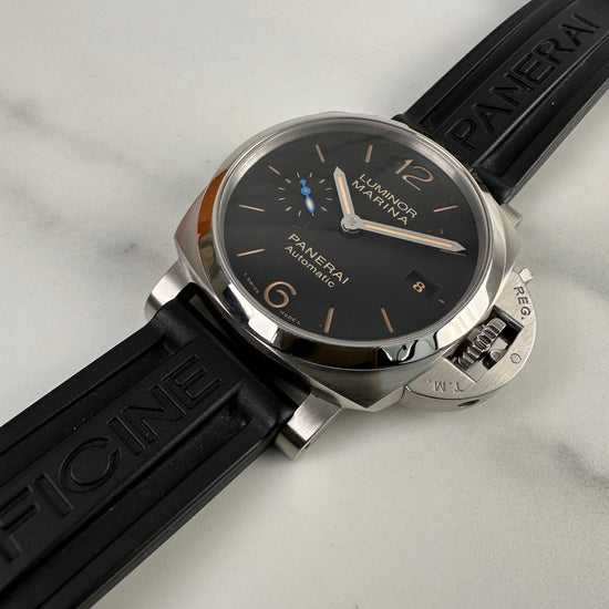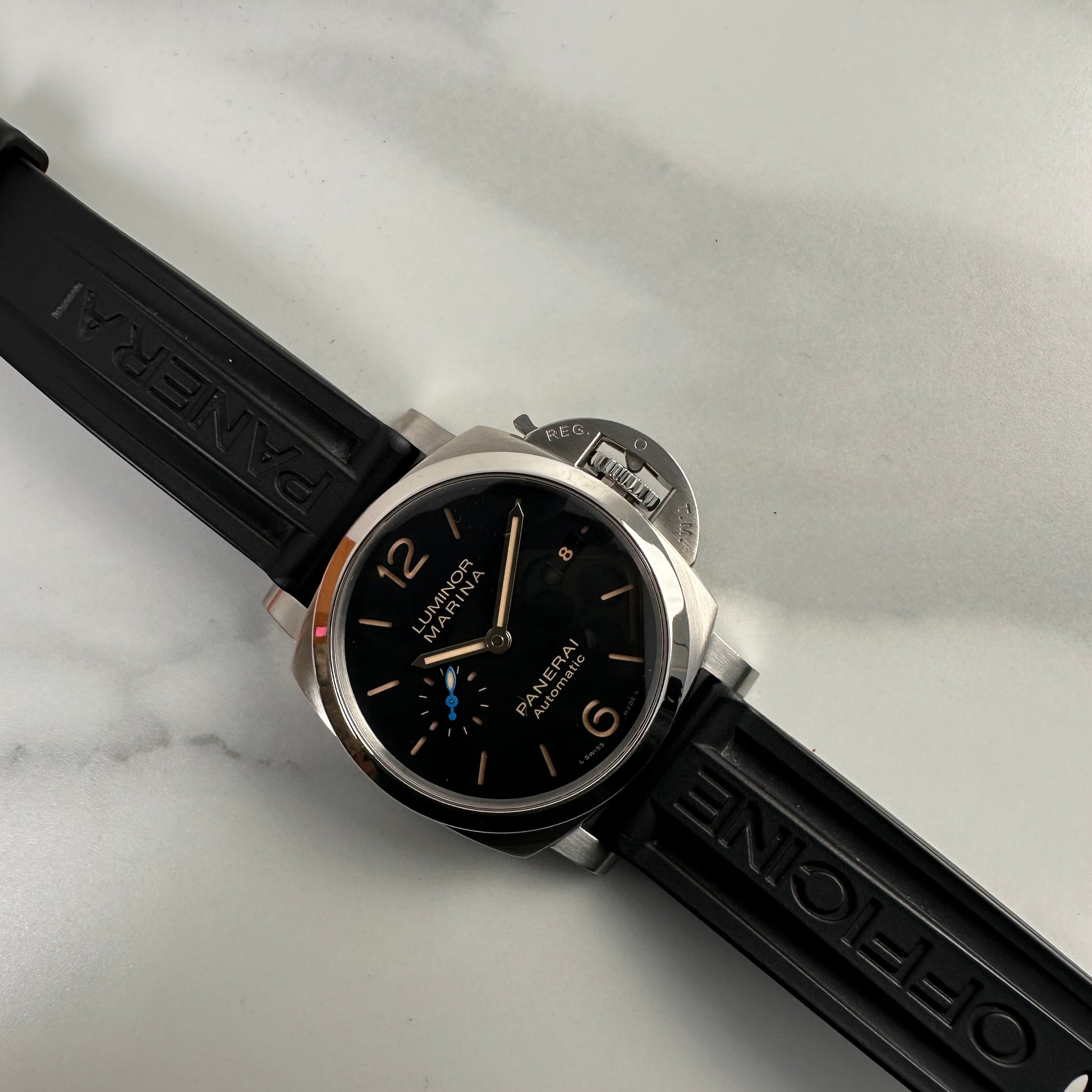 La ligne Panerai Luminor Marina, avec son pont de protection de couronne caractéristique, est devenue un classique du style horloger italo‑suisse. Cette référence proposée ici dans sa version acier 44 mm, adopte un boîtier robuste, une mécanique manufacture et un design épuré, parfaitement cohérent avec l’héritage “marine” de la marque.