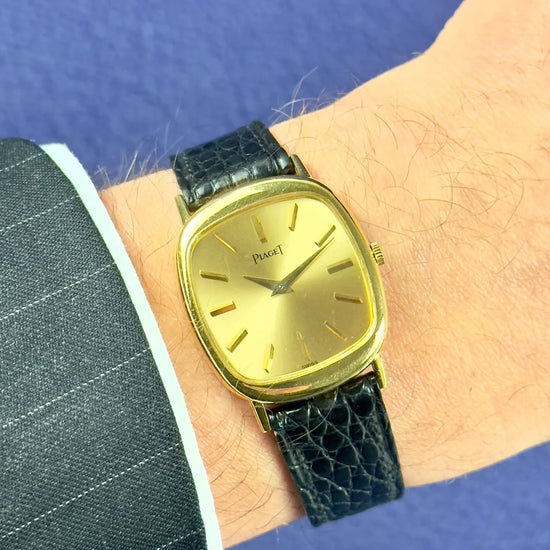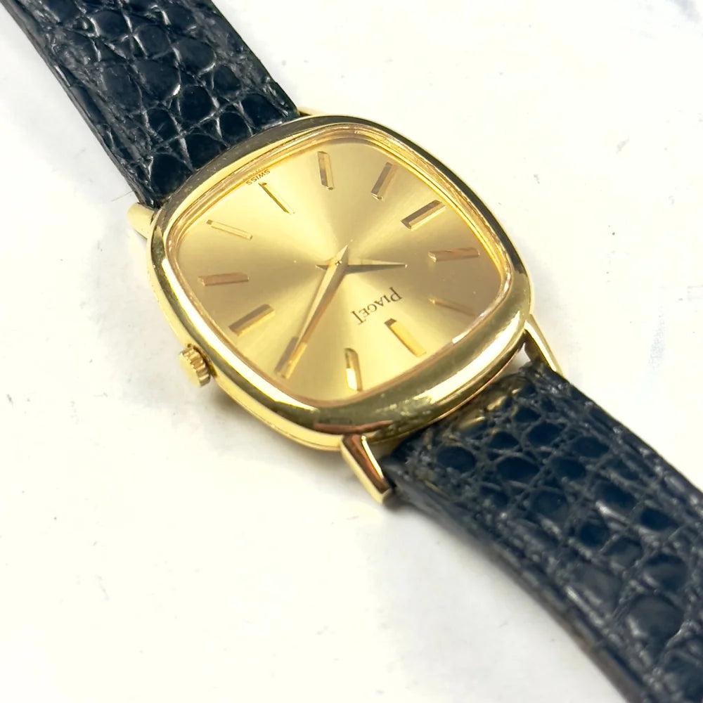 Maison de haute horlogerie et de haute joaillerie, Piaget s’est fait un nom dans les années 50–70 en maîtrisant l’art des mouvements extra-plats, conjuguant savoir-faire horloger et élégance joaillière. La référence 9454, équipée du légendaire calibre 9P (mouvement mécanique extra-plat à remontage manuel), est un exemple parfait de cette approche minimaliste, précieuse et raffinée.