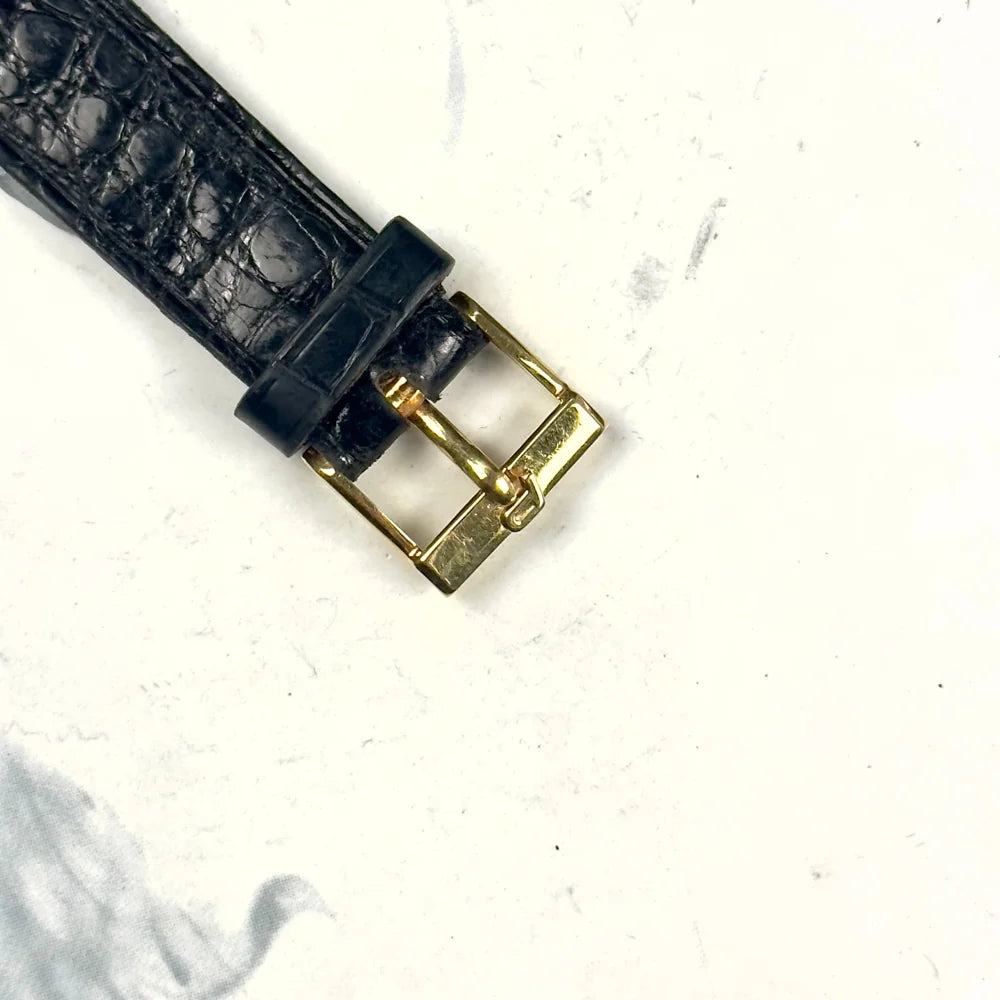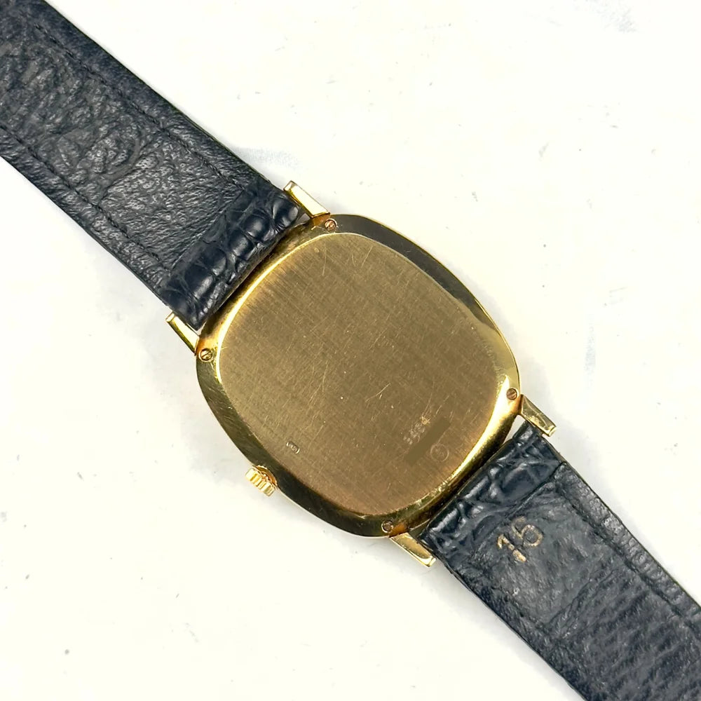 Son boîtier rectangulaire en or jaune, très en vogue dans les années 70, renforce cette élégance intemporelle. Son format 27 x 35 mm convient aussi bien à un poignet masculin fin qu’à un port mixte pour amateur de montres vintage au style affirmé.