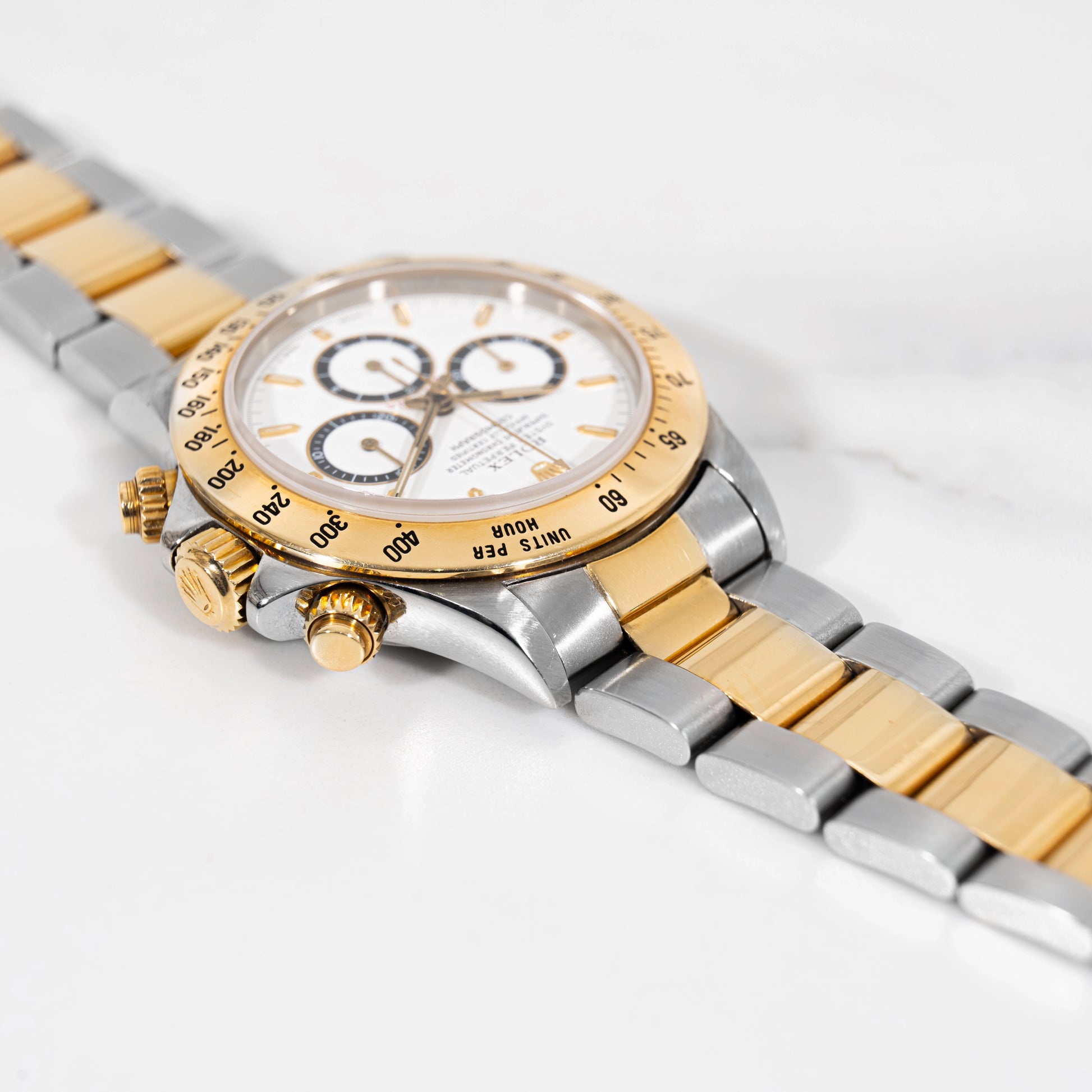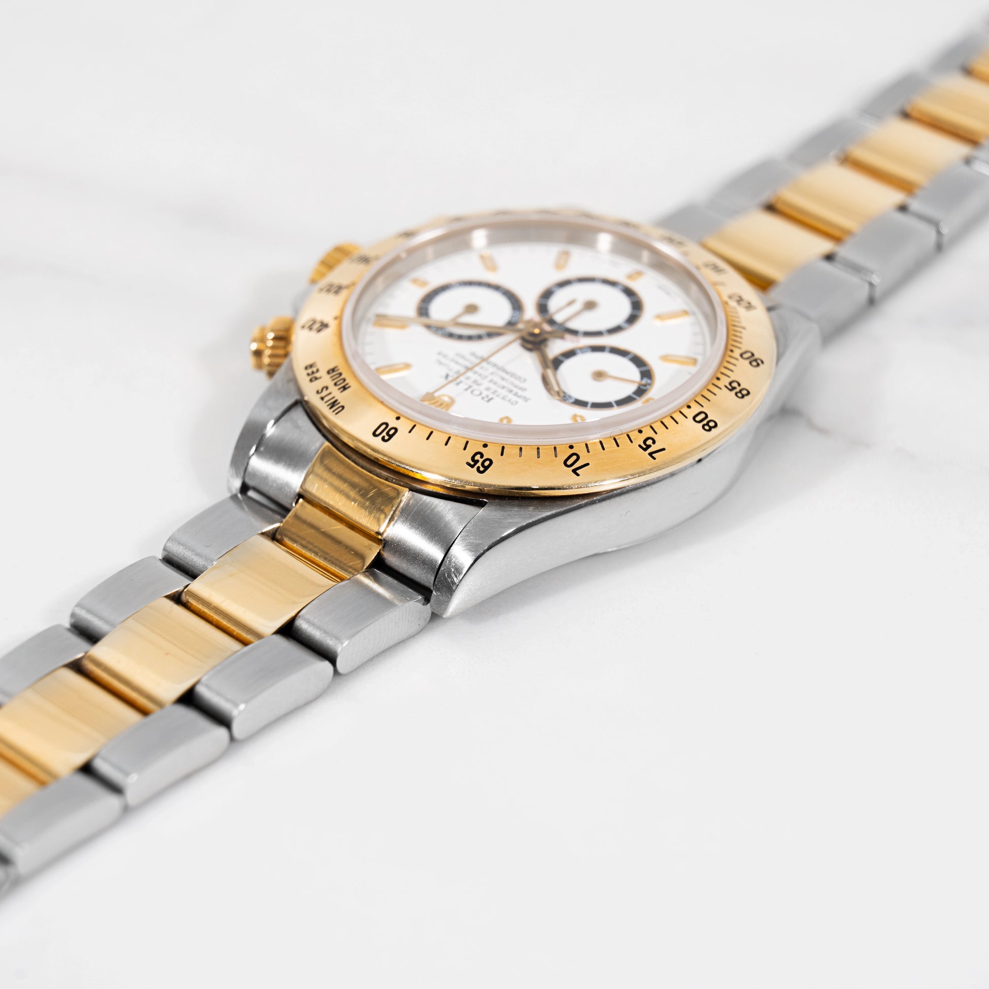 Cette Daytona 16523 est une véritable pièce de collection : première génération de Daytona automatique, rare année 1989, et configuration biton emblématique. Que ce soit pour son moteur Zenith, son esthétique unique ou son importance historique, elle représente un excellent investissement horloger, tout en étant parfaitement portable au quotidien.