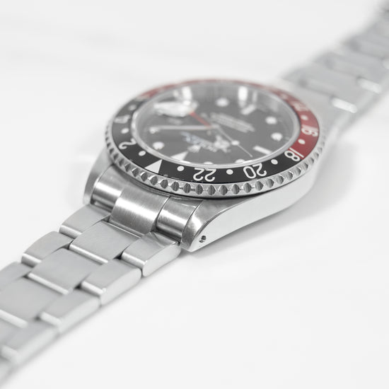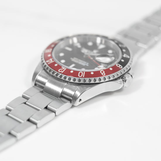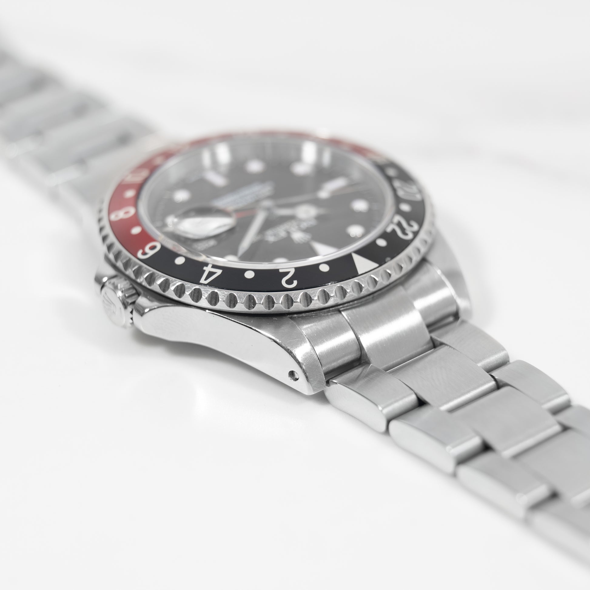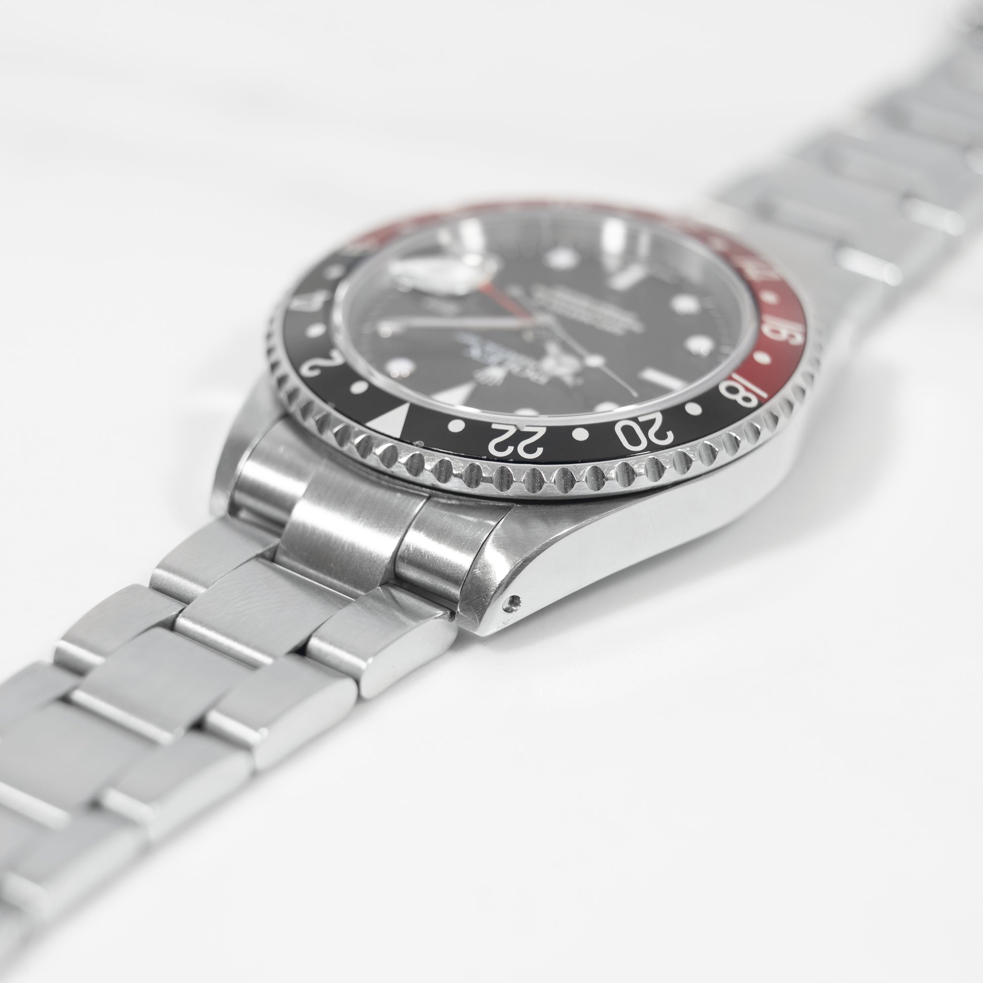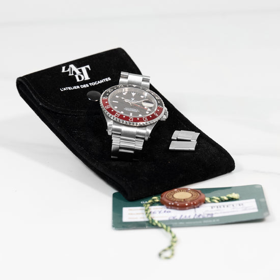 Cette 16710 est une montre de collection avec un très bon pedigree : année 2001 « Coke », révisée chez Rolex en 2019, et livrée avec une lunette « Pepsi » faded additionnelle qui lui apporte une dimension personnalisable et recherchée. Elle combine l’histoire, le style vintage et une mécanique robuste. Pour un amateur qui veut une GMT‑Master II série 16710 authentique avec potentiel de fidélité, c’est un excellent choix.