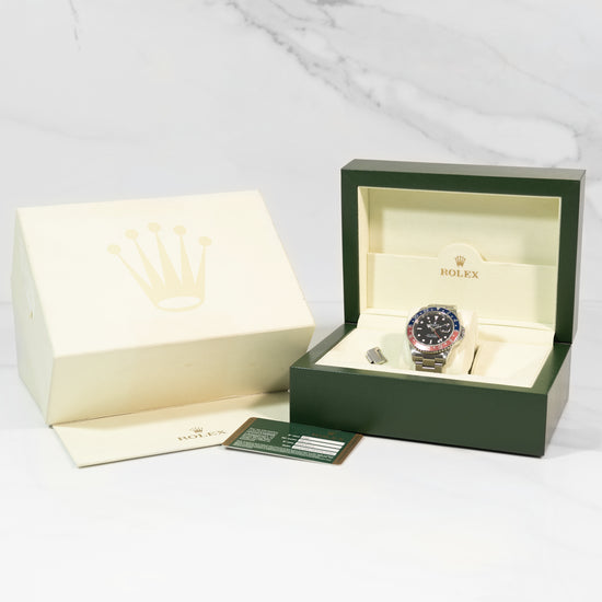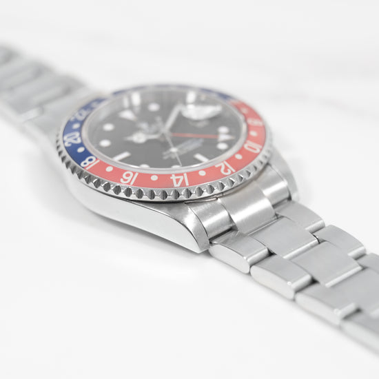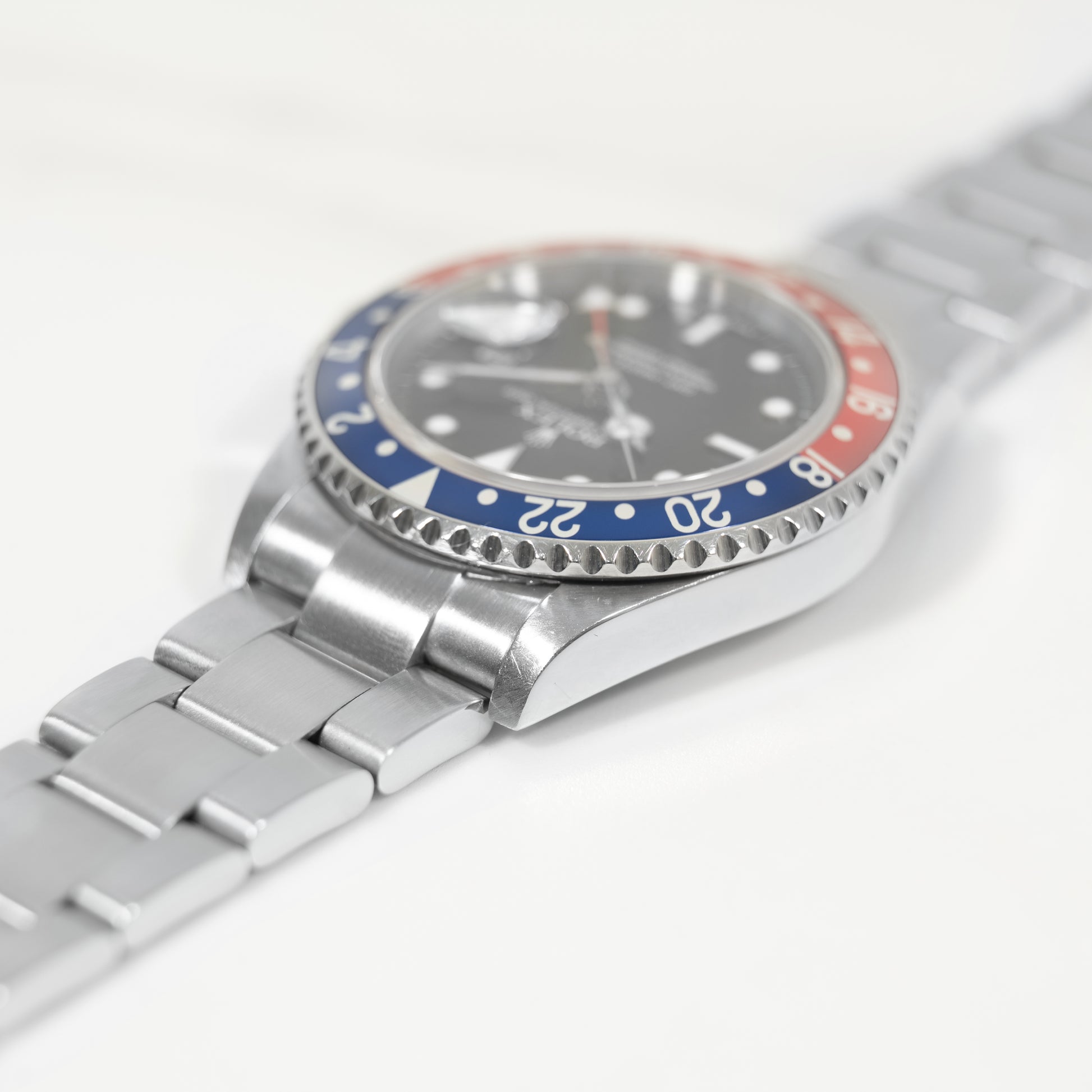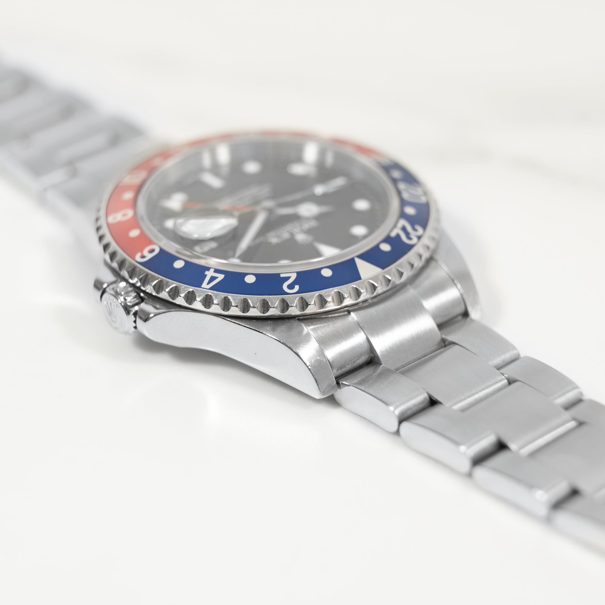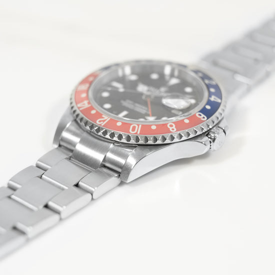 Cette 16710 est une montre de collection avec un très bon pedigree : année 2001 « Coke », révisée chez Rolex en 2019, et livrée avec une lunette « Pepsi » faded additionnelle qui lui apporte une dimension personnalisable et recherchée. Elle combine l’histoire, le style vintage et une mécanique robuste. Pour un amateur qui veut une GMT‑Master II série 16710 authentique avec potentiel de fidélité, c’est un excellent choix.