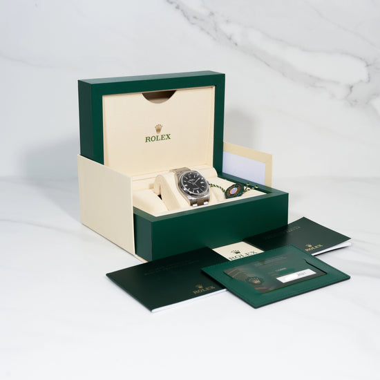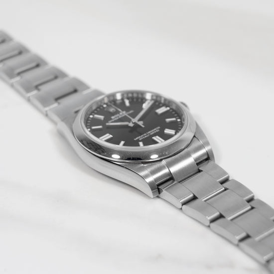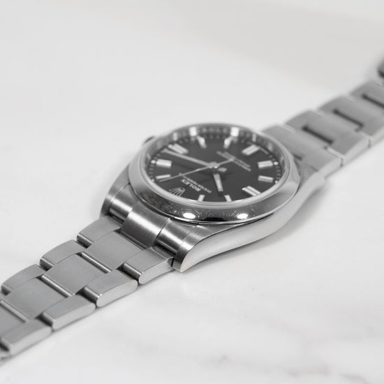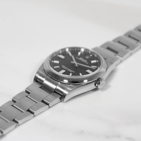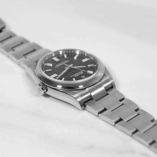 La 126000 cadran noir est une montre pure, fiable et indémodable, au format universel de 36 mm. Elle concentre l’ADN Rolex dans sa forme la plus lisible, la plus polyvalente et la plus accessible. Un choix de goût pour qui cherche une montre de tous les jours avec une signature forte et discrète à la fois.