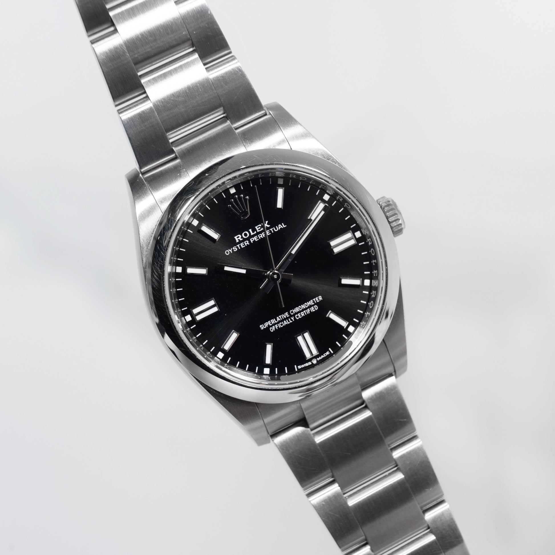La ligne Oyster Perpetual est l’essence même de l’horlogerie Rolex : fiabilité, sobriété et précision, sans aucune complication superflue. En 2020, Rolex actualise la collection avec la référence 126000, intégrant le nouveau calibre 3230 et une large palette de cadrans modernes et colorés.