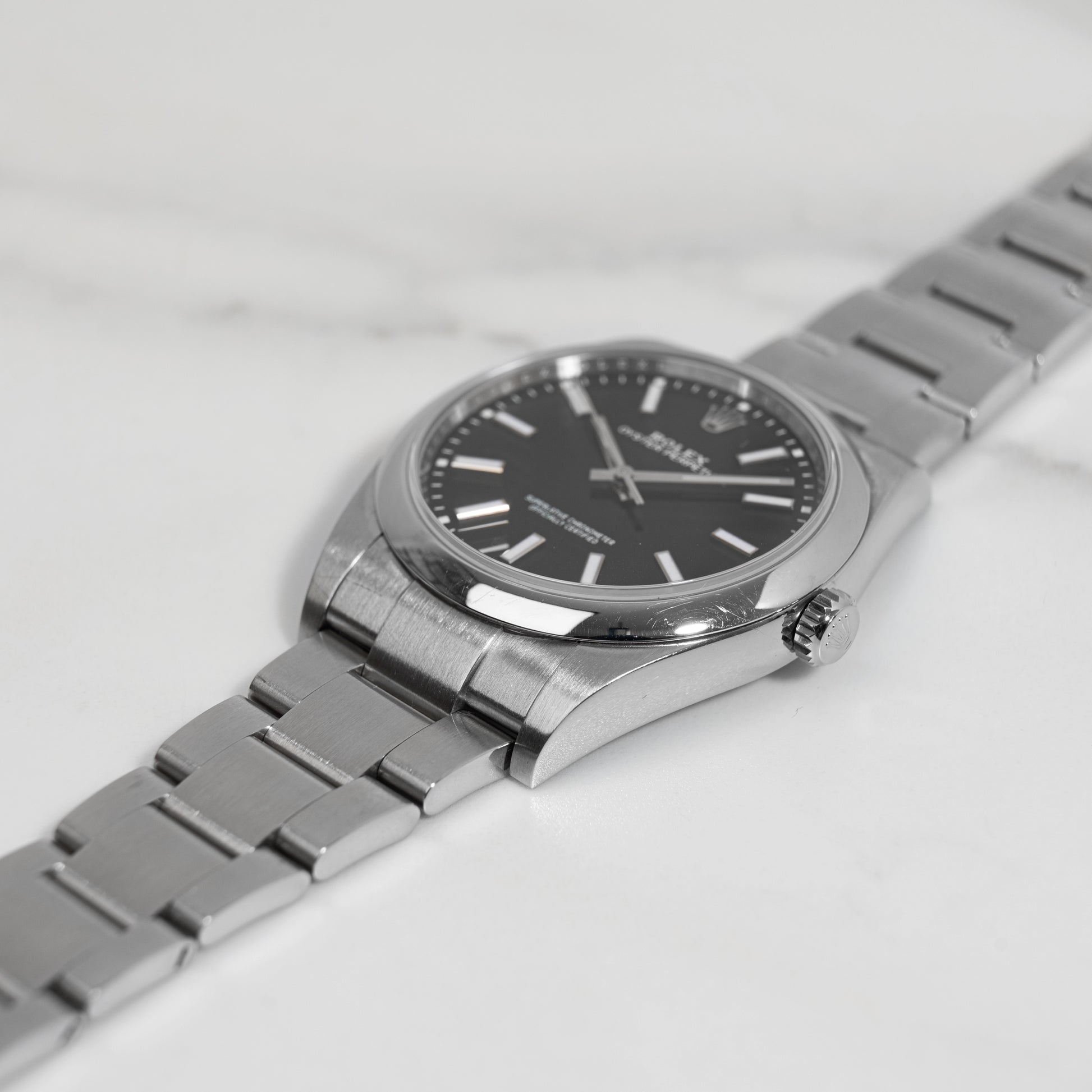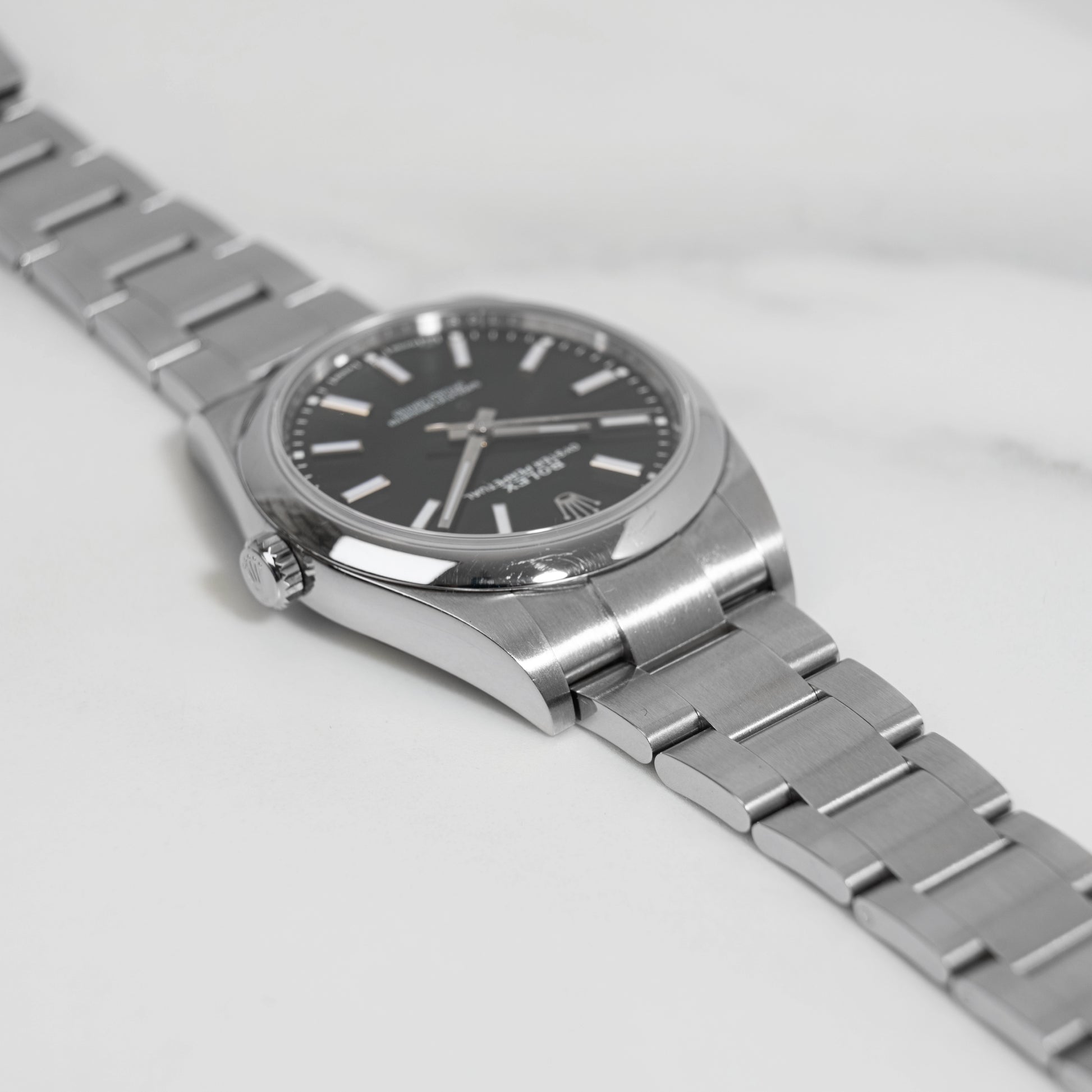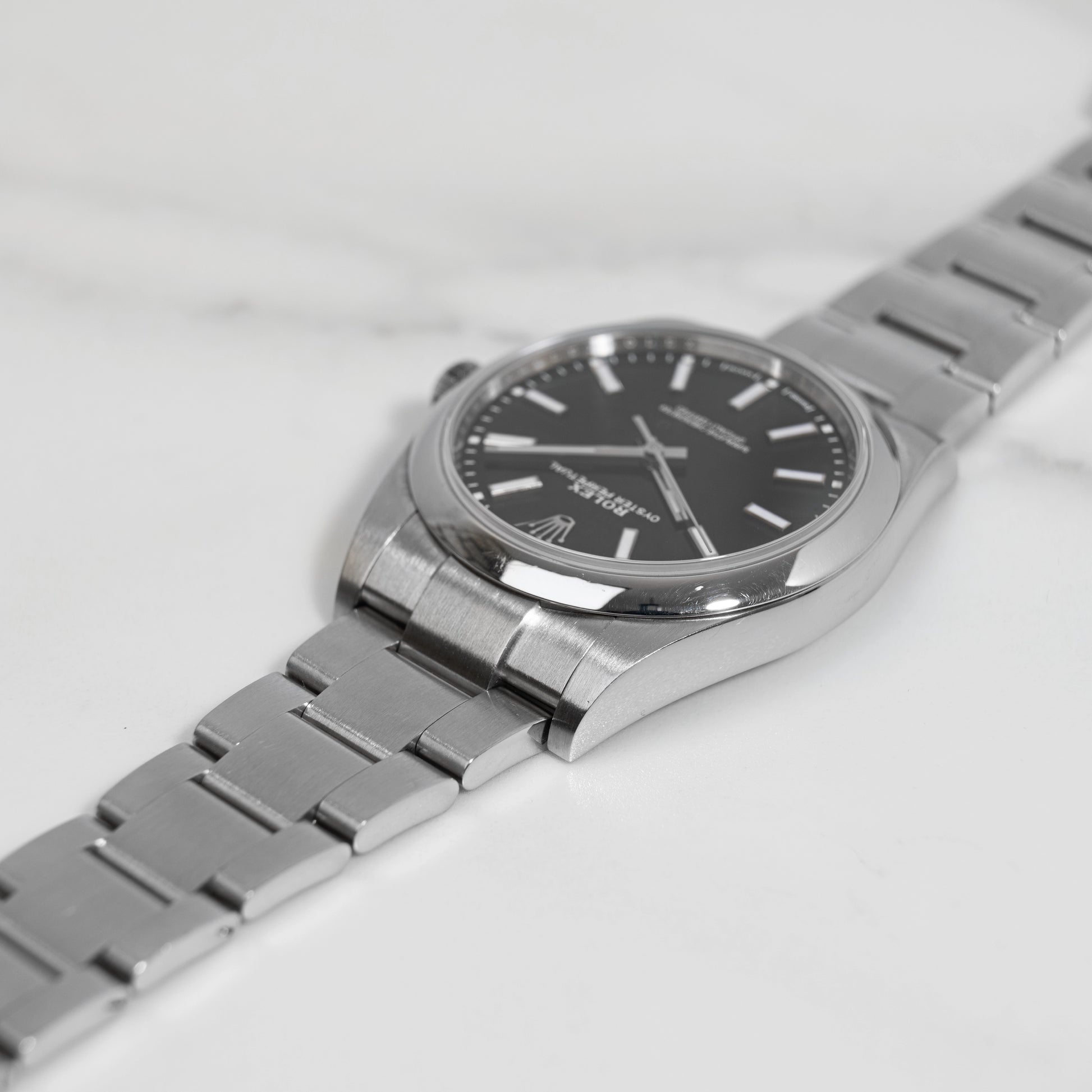La collection Oyster Perpetual de Rolex incarne l’essence du style horloger classique et robuste : simplicité, précision, esthétisme épuré. La référence 114300, d’un diamètre de 39 mm, a été introduite pour proposer une taille moderne tout en conservant les codes Oyster steel.