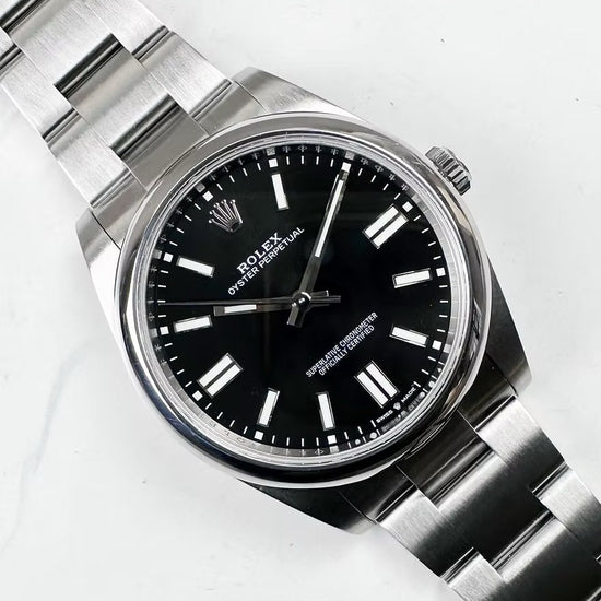 La 124300 est déjà culte grâce à ses cadrans éclatants et son diamètre moderne. Une Rolex versatile et contemporaine, parfaite pour un premier achat ou pour enrichir une collection avec une pièce vibrante et pleine de caractère.
