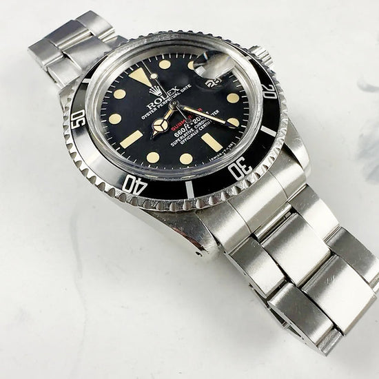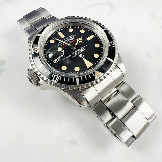 La Submariner 1680 est la première de la gamme à accueillir la complication date, avec son célèbre cyclope. Produite de la fin des années 60 jusqu’à la fin des années 70, elle est devenue mythique, notamment dans cette configuration rare avec l'inscription "Submariner" en rouge sur le cadran. Le cadran MK6, proposé ici, se distingue par sa typographie précise et sa patine homogène, gage d’authenticité et de collection.