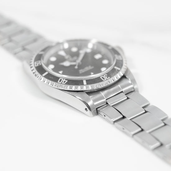 La gamme Tudor Submariner est l’expression sportive et historique de l’horlogerie de plongée grand public, héritière de codes professionnels depuis sa création. La référence 79090 est une des dernières éditions produites en acier de cette lignée, ce qui en fait aujourd’hui une montre vintage recherchée.